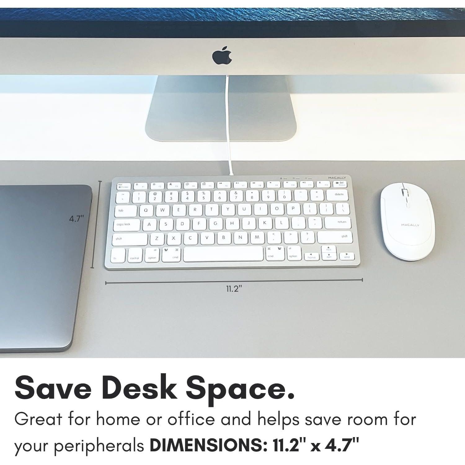 Macally Small Wired Keyboard for Mac and Windows - 78 Scissor Switch Keys Compatible Apple Keyboard - USB Mini Keyboard That Saves Space and Looks Great - Plug and Play Wired Mac Keyboard - Aluminum