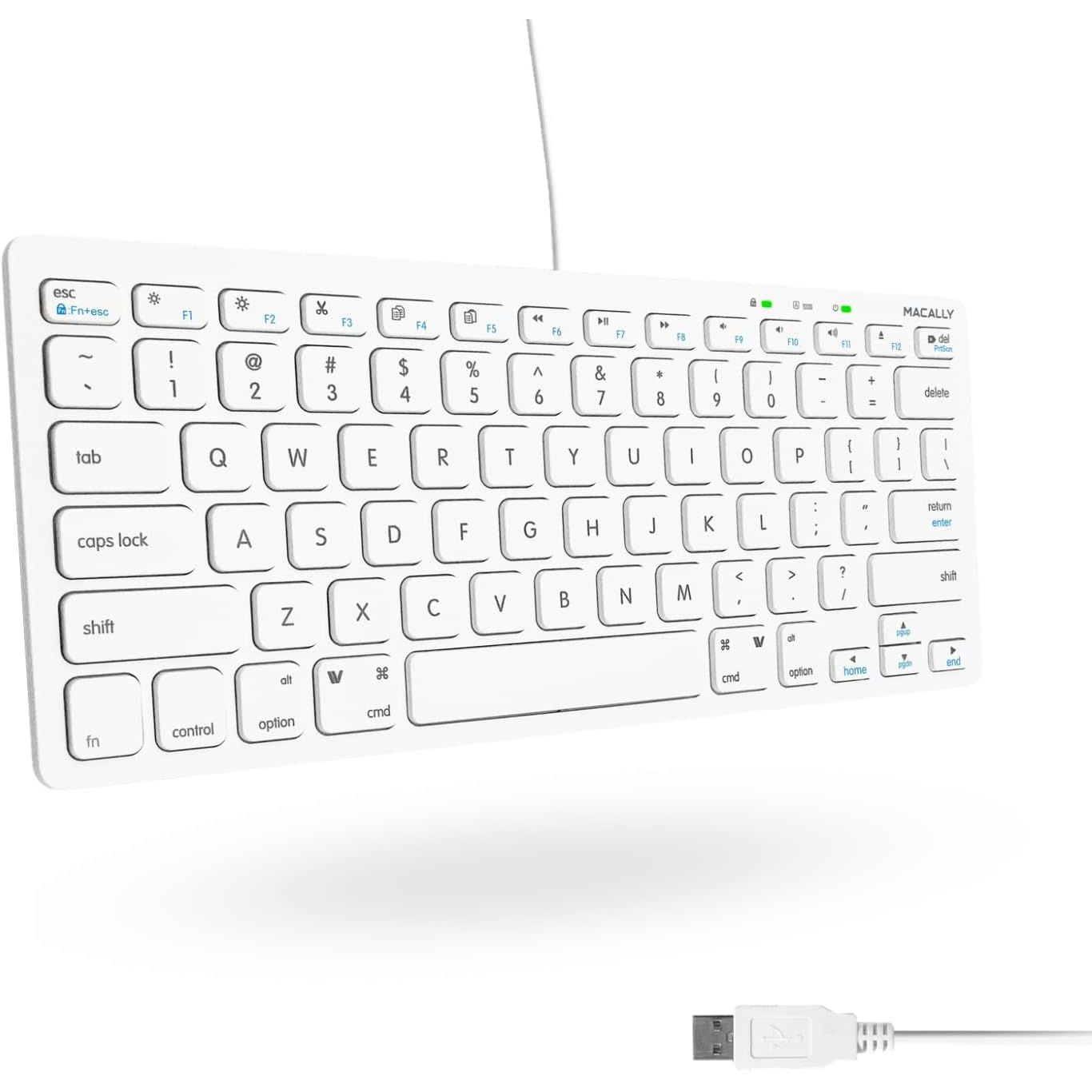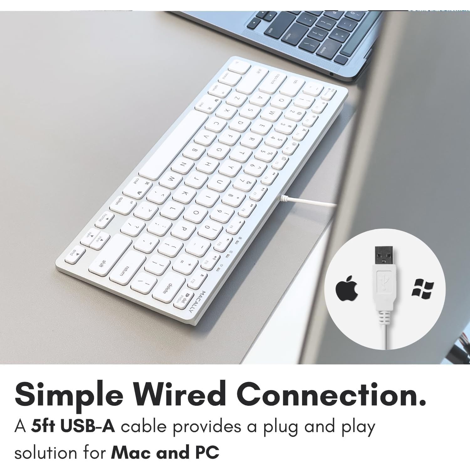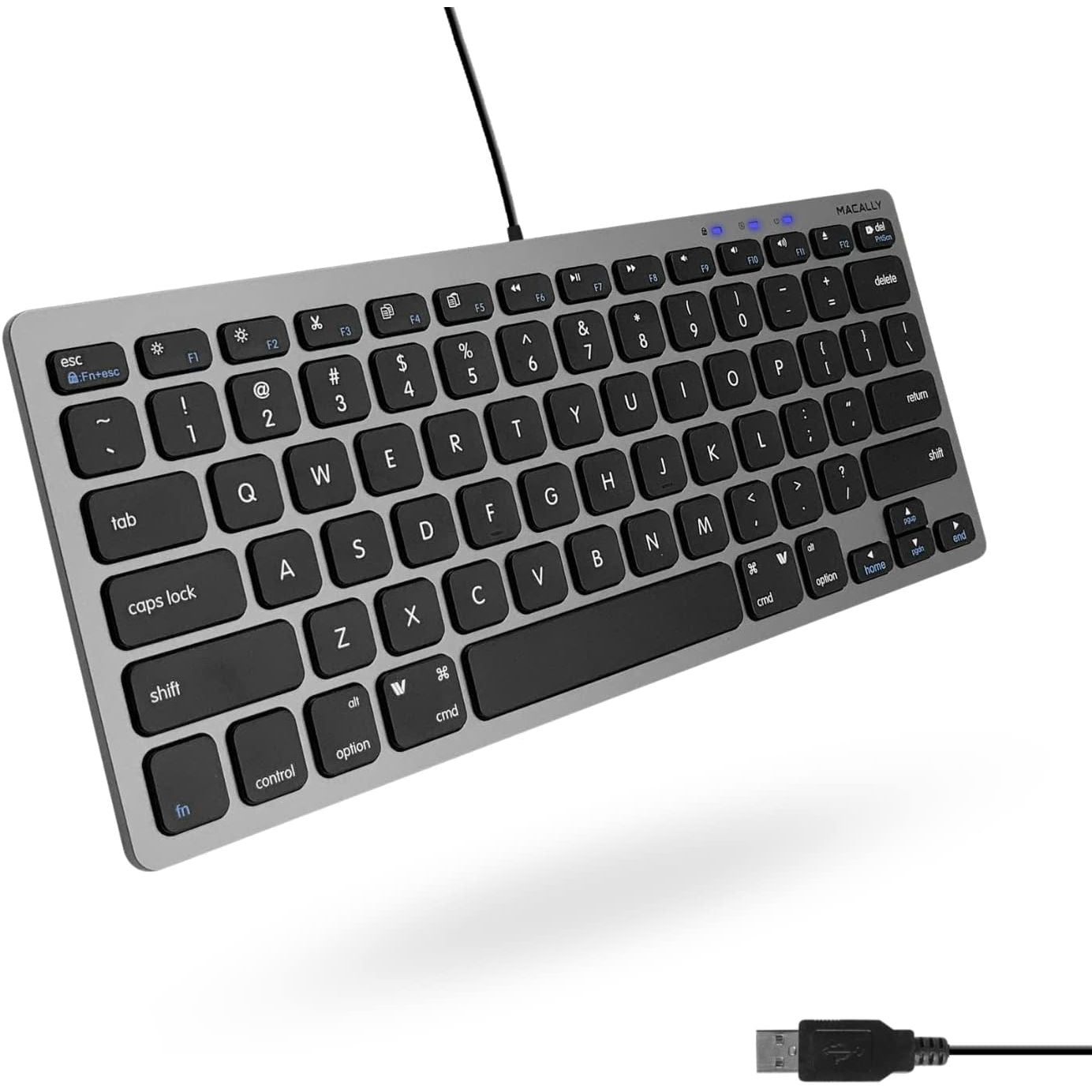 - Macally Small Wired Keyboard for Mac and Windows - 78 Scissor Switch Keys Compatible Apple Keyboard - USB Mini Keyboard That Saves Space and Looks Great - Plug and Play Wired Mac Keyboard - Aluminum