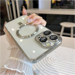 - [Electroplated metallic luster] SYMBOLY Clear Magnetic iPhone case designed specifically for iPhone 15 Pro Max. This phone case features a sleek and stylish electroplated design that adds a touch of elegance to your device, which adds a layer of metal coating to the phone case, making your phone more resistant to scratches, and general wear and tear. These finishes give the phone case a premium and luxurious look, enhancing its overall aesthetic appeal.