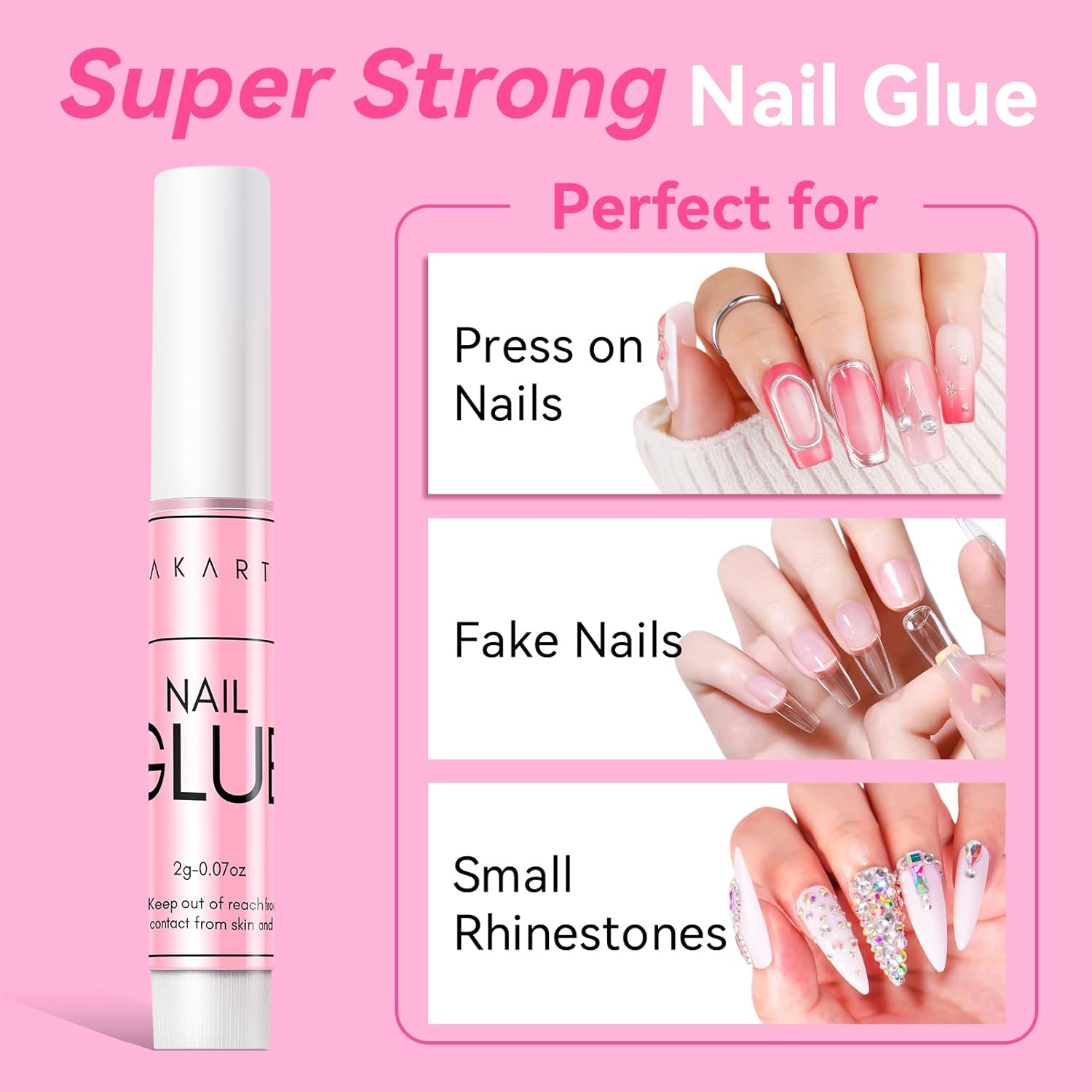 - Makartt Super Strong Nail Glue for Press On Nails: Professional Acrylic Nails Nail Adhesive Bond Nail Tips Glue for Stick On Nails Long Lasting Nail Glue for Fake Nails Broken Nails Repair 10Pcs