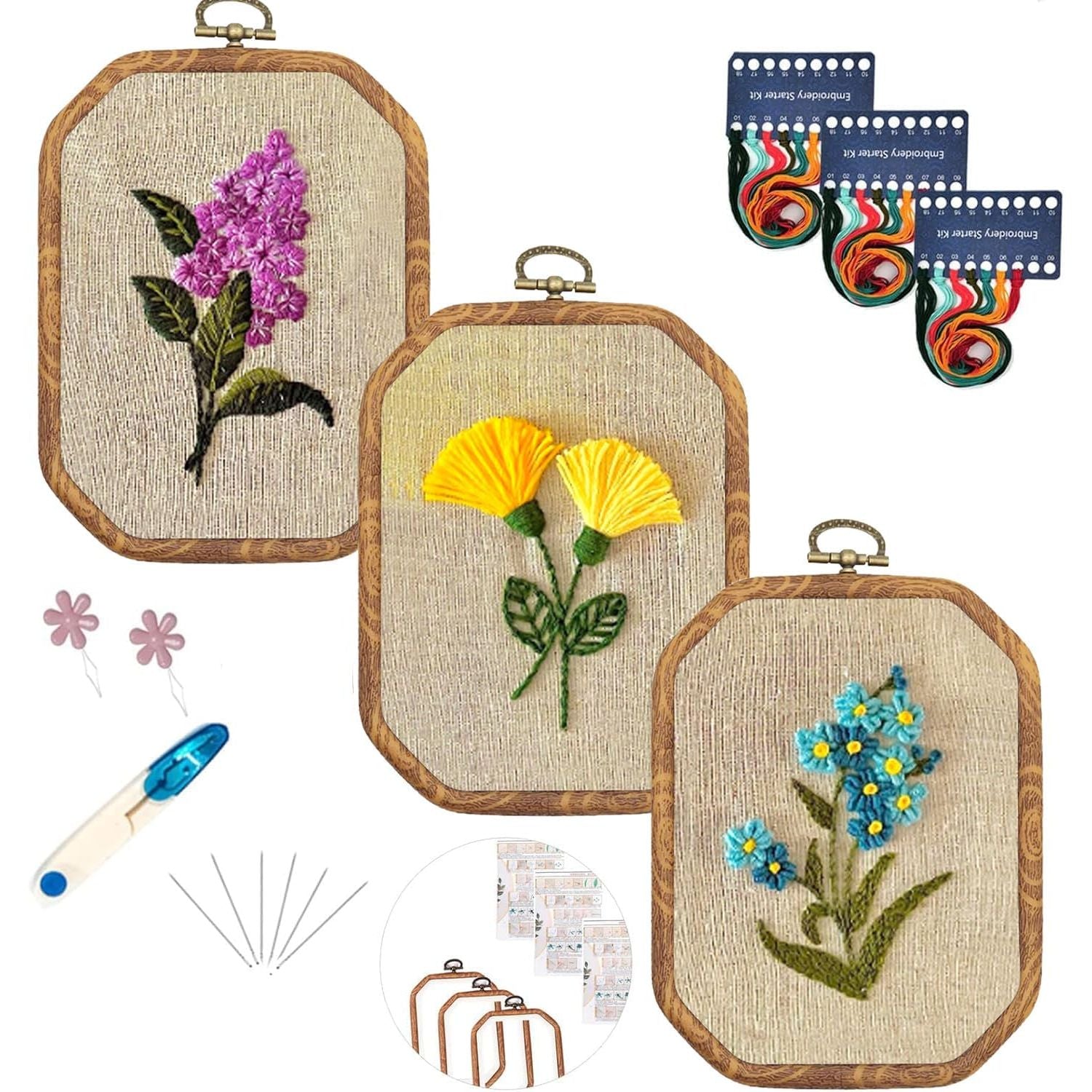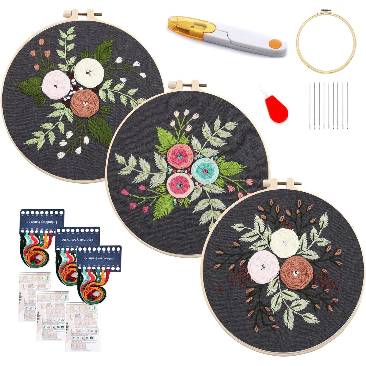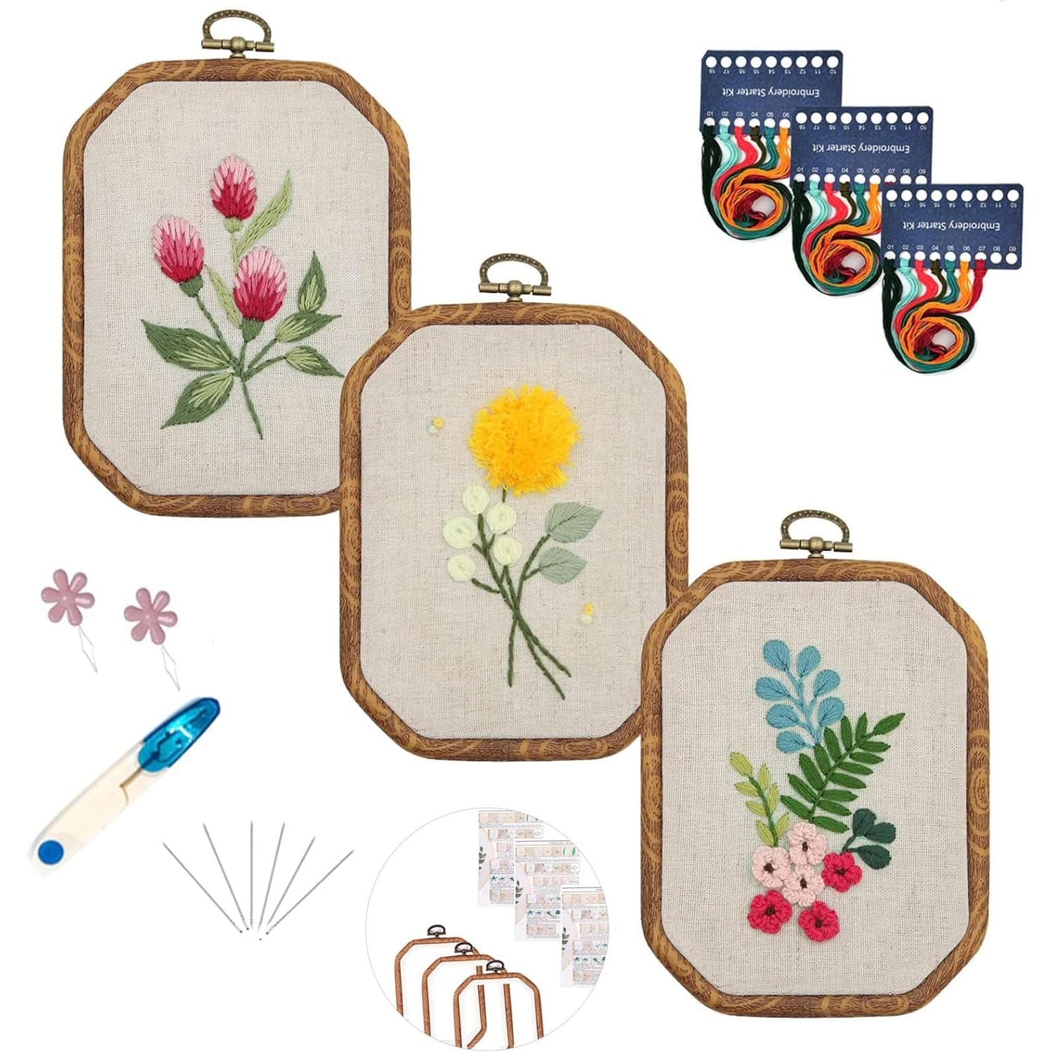 - Maydear 3 Sets Embroidery kit for Beginners Adults,Embroidery Kit Punch Needle Kit Cross Stitch Kits with Embroidery Hoop and Instructions,Hand Embroidery Starter Kit