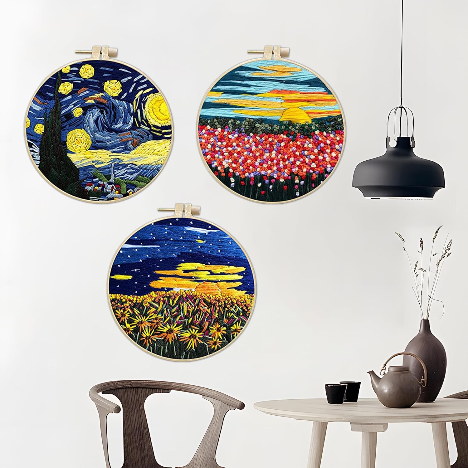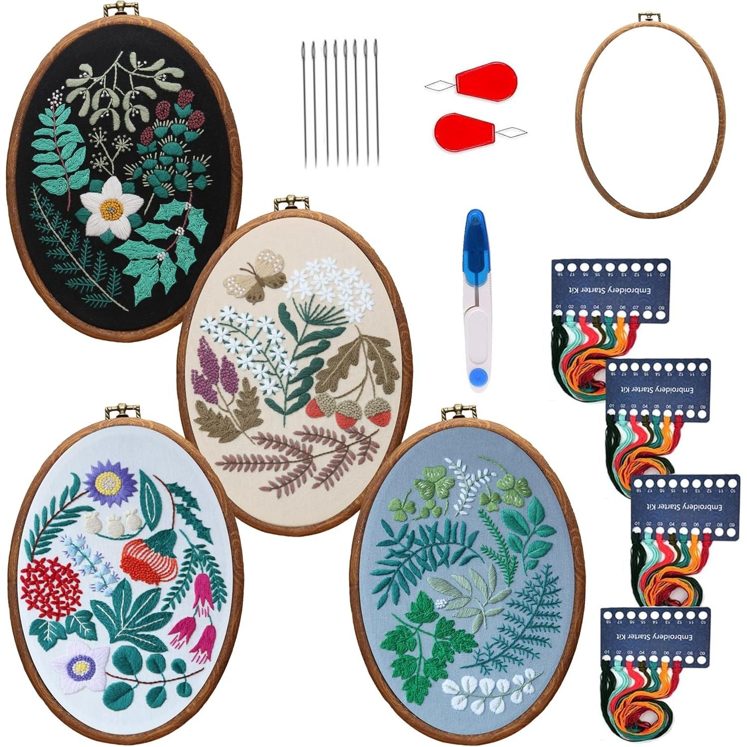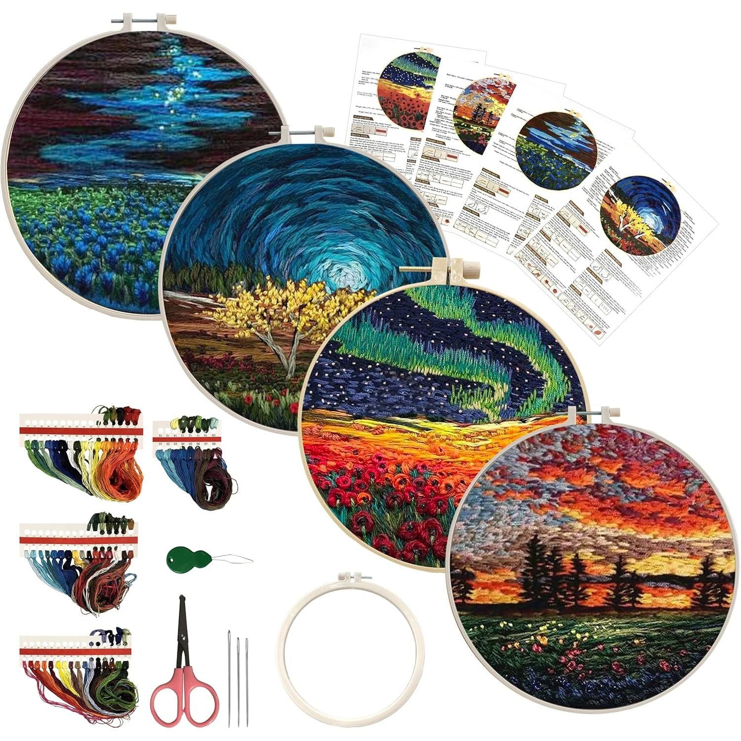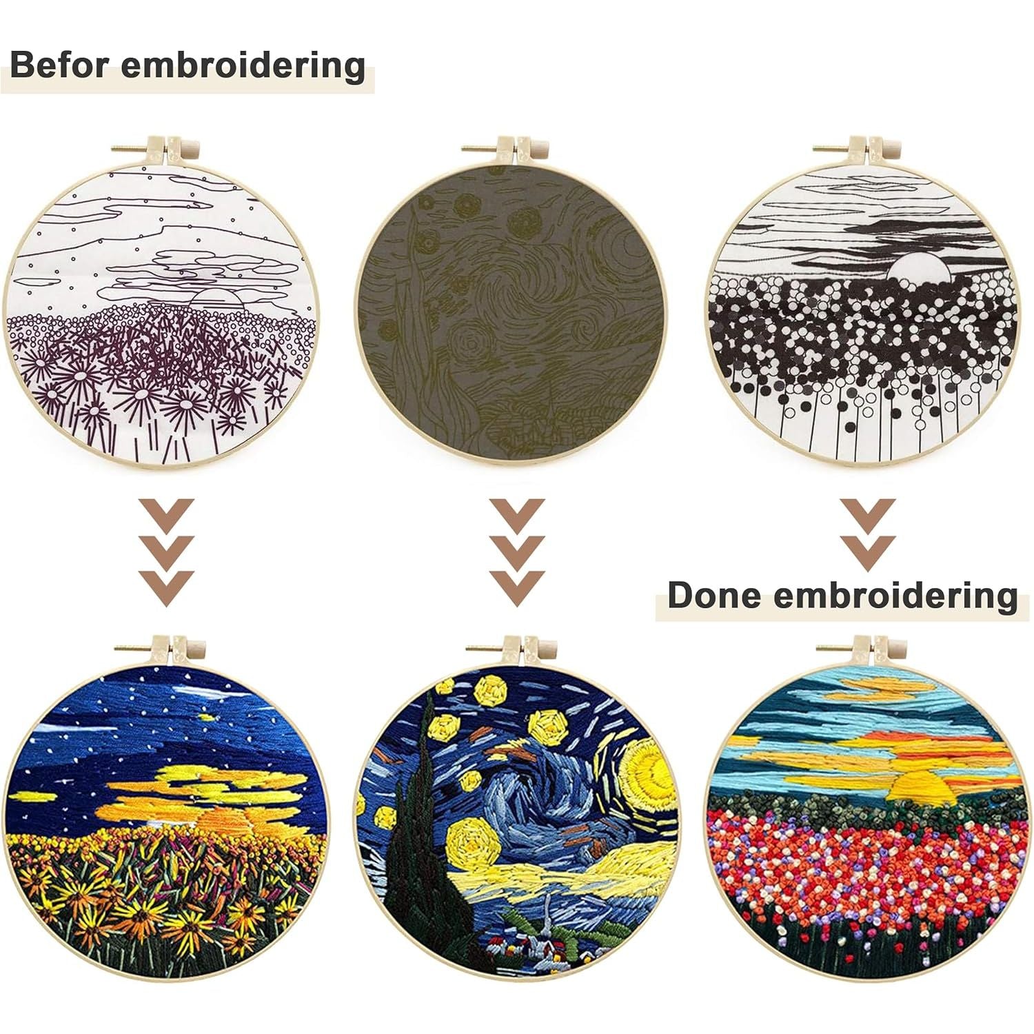 - Maydear 3 Sets Embroidery kit for Beginners Adults,Embroidery Kit Punch Needle Kit Cross Stitch Kits with Embroidery Hoop and Instructions,Hand Embroidery Starter Kit