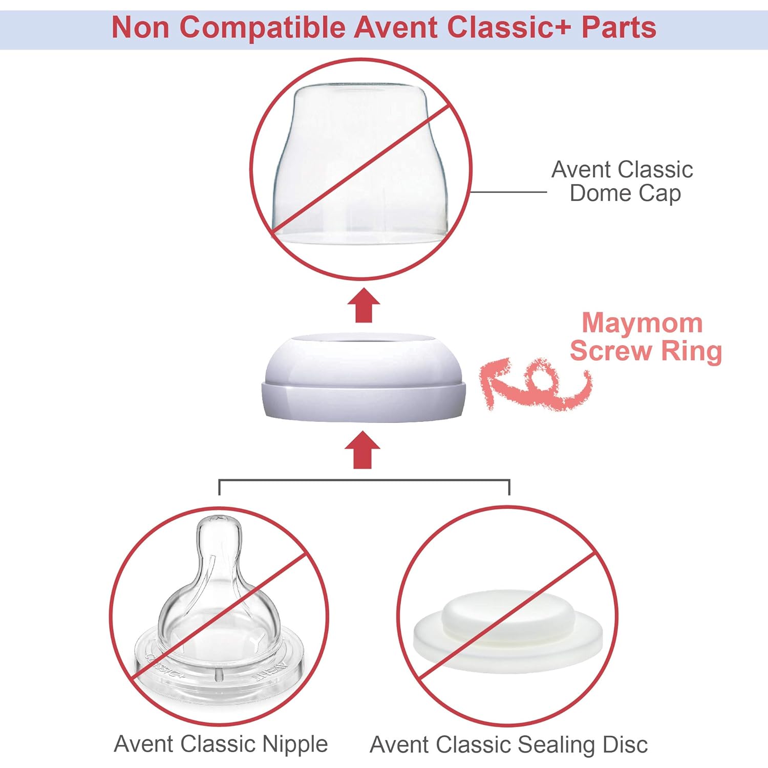 - Maymom Dome Caps, Screw Rings, Sealing Discs Compatible with Avent Natural Bottles, PP Bottles; No Nipple Included. Convert Avent Classic Bottle Into Natural