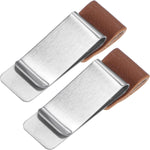 MECCANIXITY 50mm Stainless Steel Clip with PU Leather Pen Loop Pencil Holder for Notebook Journal Diary, Silver Black Pack of 2