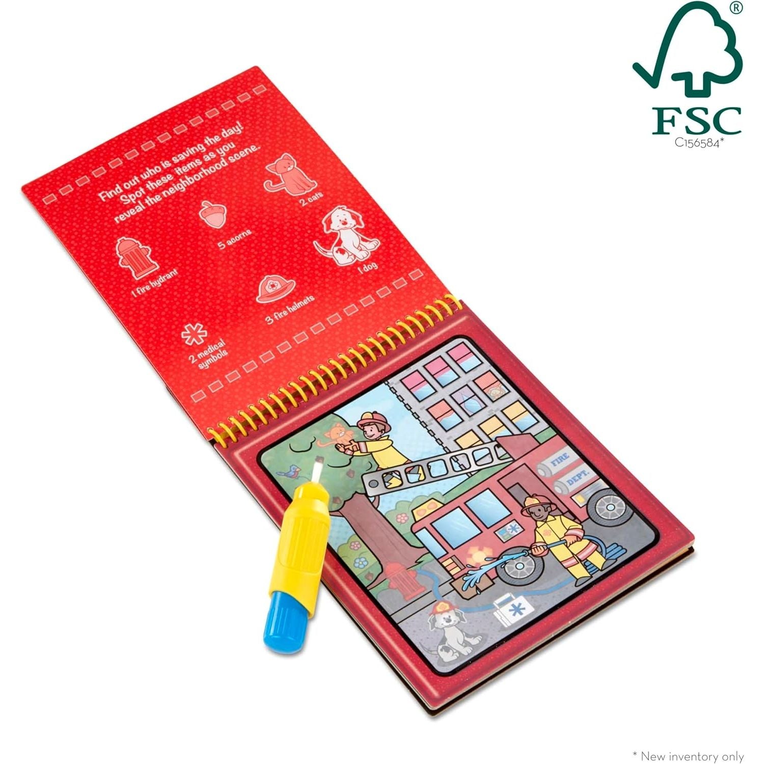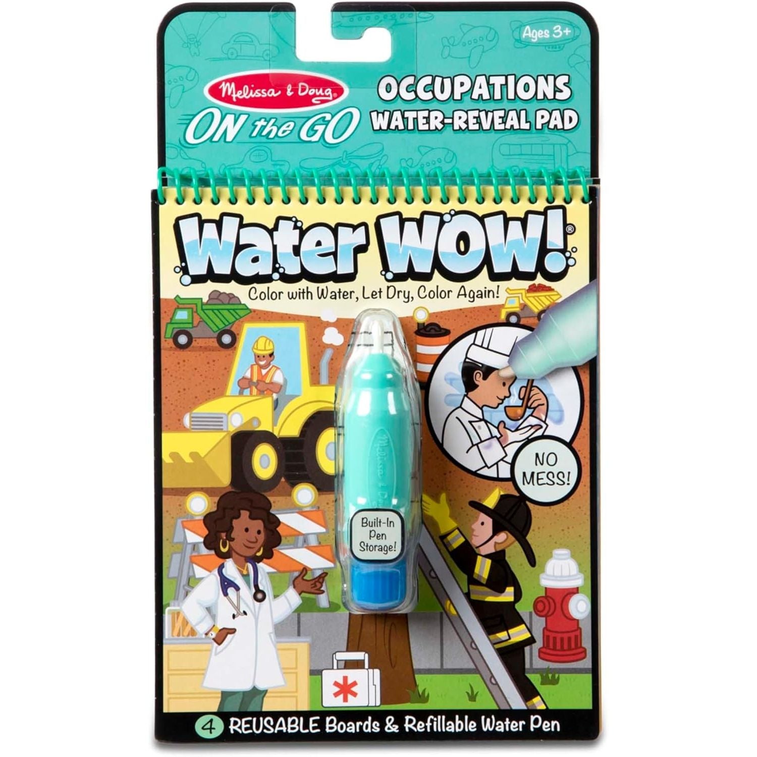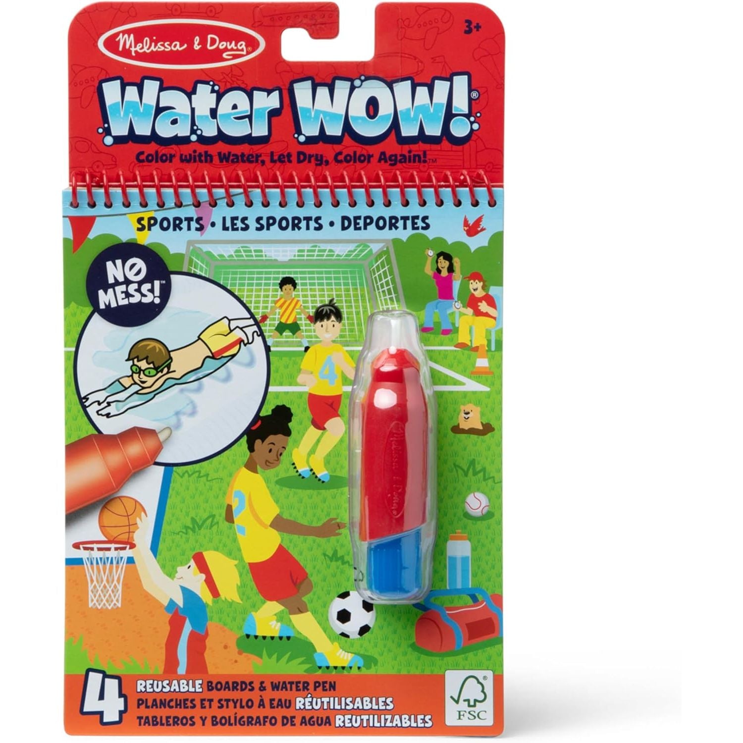 Product Description Make early learning magical and mess-free with the Melissa & Doug On the Go Water Wow! Vehicle Activity Pad! This reusable paint-with-water book includes 4 spiral-bound pages and a refillable, no-leak water pen that reveals letters and colorful images with every stroke—then dries to “erase” for endless repeat play. Featuring a vehicle theme, the pad includes four scenes to color and a search-and-find activity for each one. It’s a fun, screen-free way to build early literacy, fine motor skills, and hand-eye coordination—at home or on the go. Perfectly sized for little hands, the chunky water pen stores in the cover, making this a parent-approved travel toy for car rides, airplanes, waiting rooms, and quiet time at home. Whether you're celebrating a birthday, holiday, back-to-school season, preschool milestone, or gearing up for travel, this screen-free, hands-on activity makes a thoughtful gift for kids ages 3 to 7. Compact enough to fit in backpacks and carry-ons, it’s a fun and educational way to keep little ones engaged on the go. Pair it with a Melissa & Doug Reusable Sticker Pad for even more creative learning wherever you are. This product is certified by the Forest Stewardship Council. FSC certification ensures that products come from responsibly managed forests that provide environmental, social, and economic benefits, and that forests are protected for future generations. Please note that FSC certification applies to new inventory only (FSC C156584) Brand Story By P.when('A').execute(function(A) { A.on('a:expander:toggle_description:toggle:collapse', function(data) { window.scroll(0, data.expander.$expander[0].offsetTop-100); }); }); From the Manufacturer This exciting coloring book includes four reusable pages and a refillable water pen. Simply use the pen to color in each scene details and vibrant color appear with every stroke. Then let the page dry to erase the pictures and fill it in again and again. This vehicle-themed book includes four scenes to color, and a search-and-find activity for each scene. The chunky-sized water pen is easy for kids to hold and stores neatly right in the front cover. See more