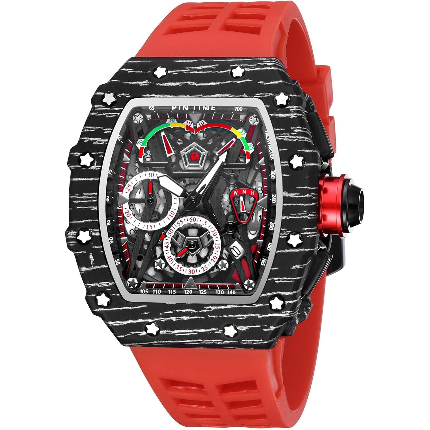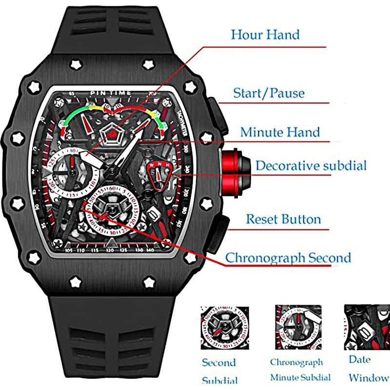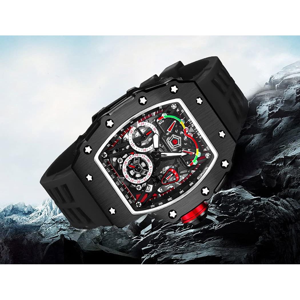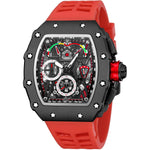 Mens Luxury Tonneau Square Watches Analog Punk Chronograph Unique Sports Wrist Watch Japanese Movement Luminous Design with Rubber Band