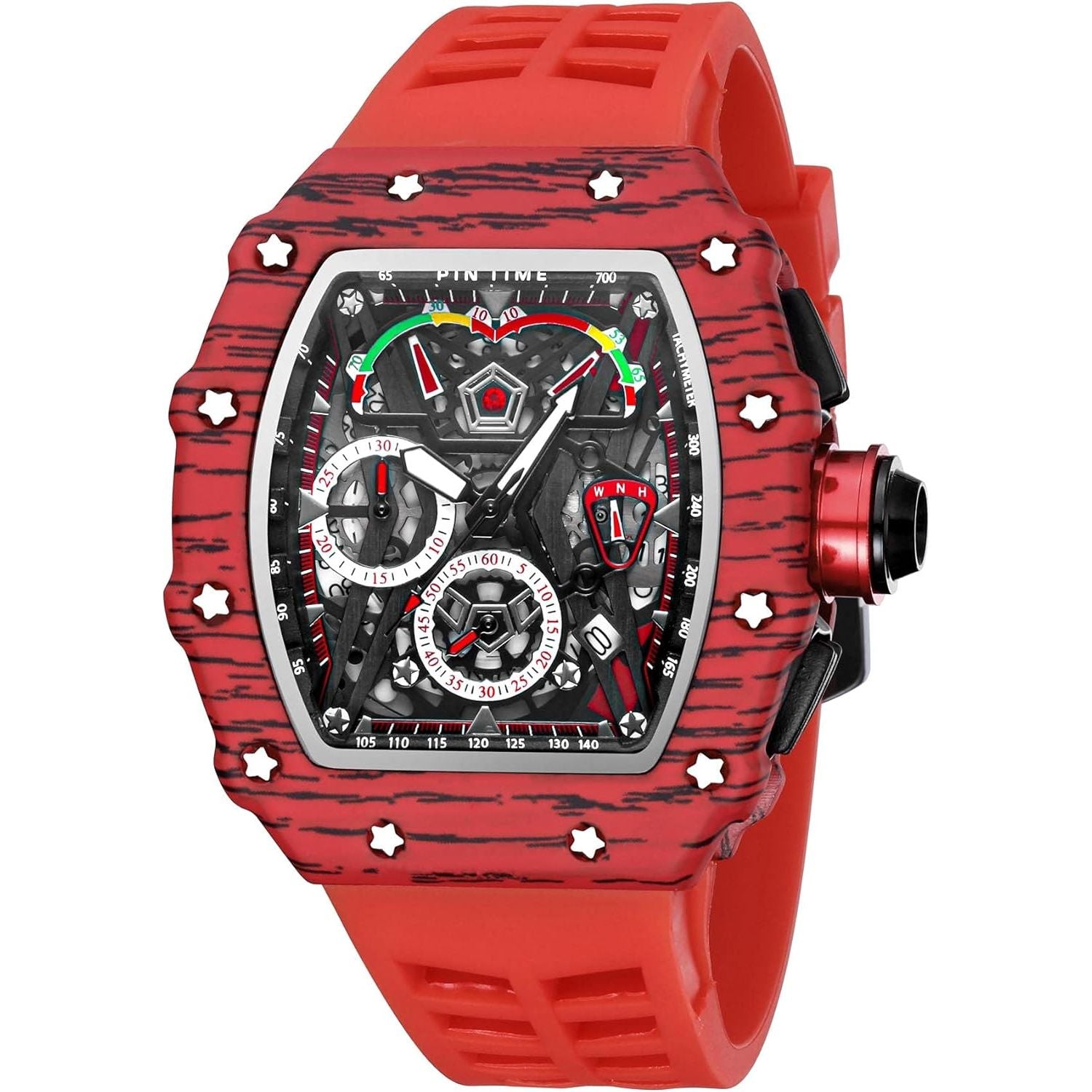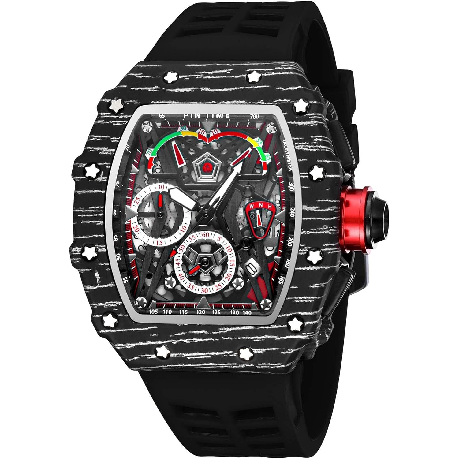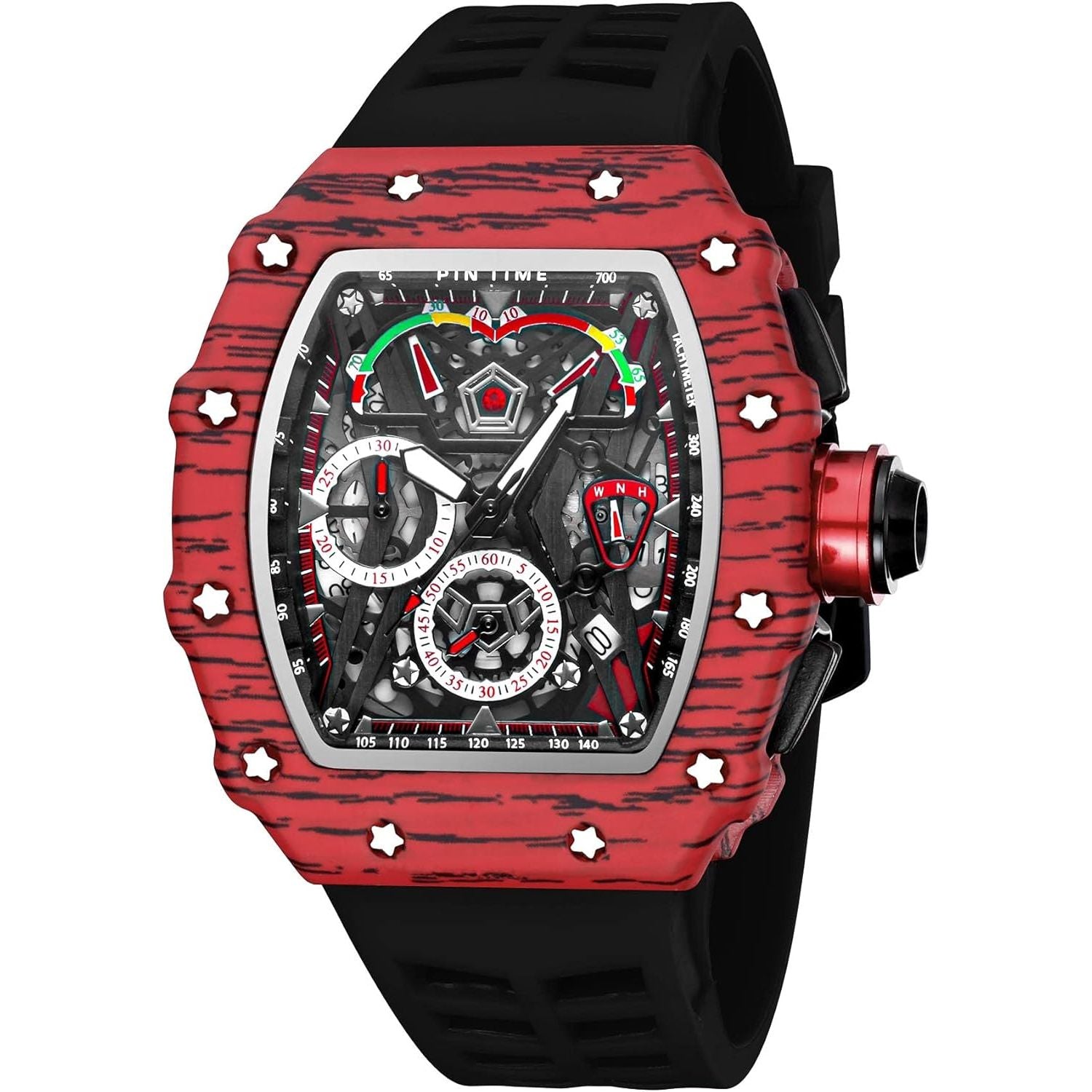 • ★Fashion Chronograph Watch: Functional chronograph, Stars decored bezel, sporty silicone strap, the watch is comfortable to wear and unique in shape, which can attract everyone's attention. This is definitely a watch worth collecting.