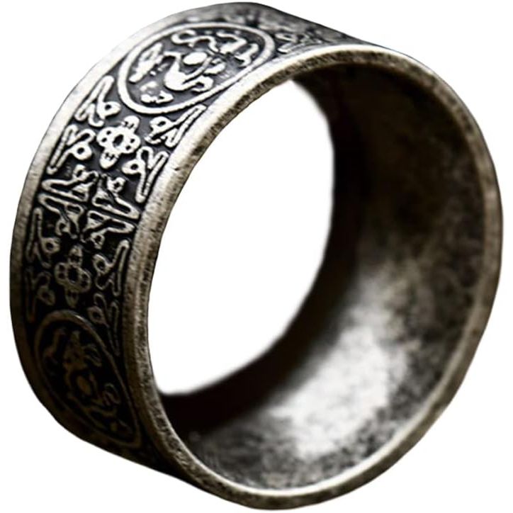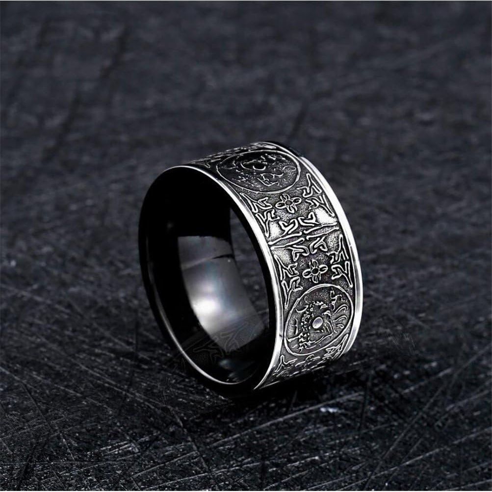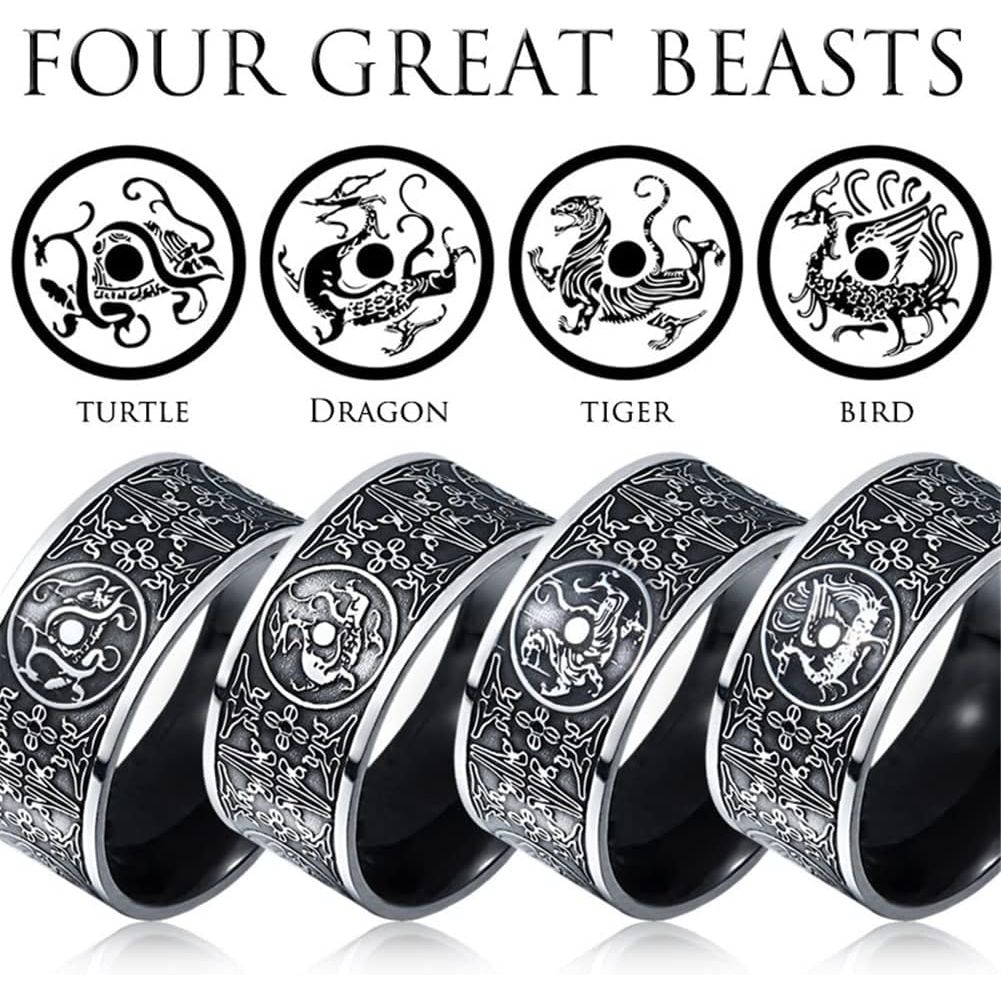 - Men's Stainless Steel Chinese Ancient 4 Guardian Beasts Ring Dragon, White Tiger, Suzaku, Basalt Carved