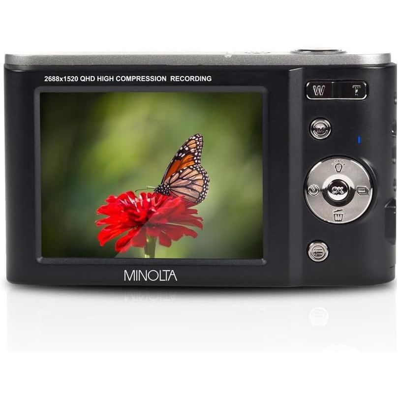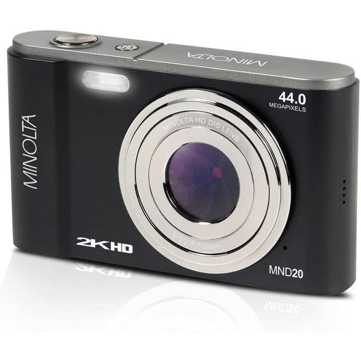 - Minolta MND20 44MP Digital Camera – 2.7K Ultra HD Video, 16X Digital Zoom, Anti-Shake Stabilization, Time Lapse, Face Detection, 2.9-inch LCD Display – Lightweight Compact Camera (Black)