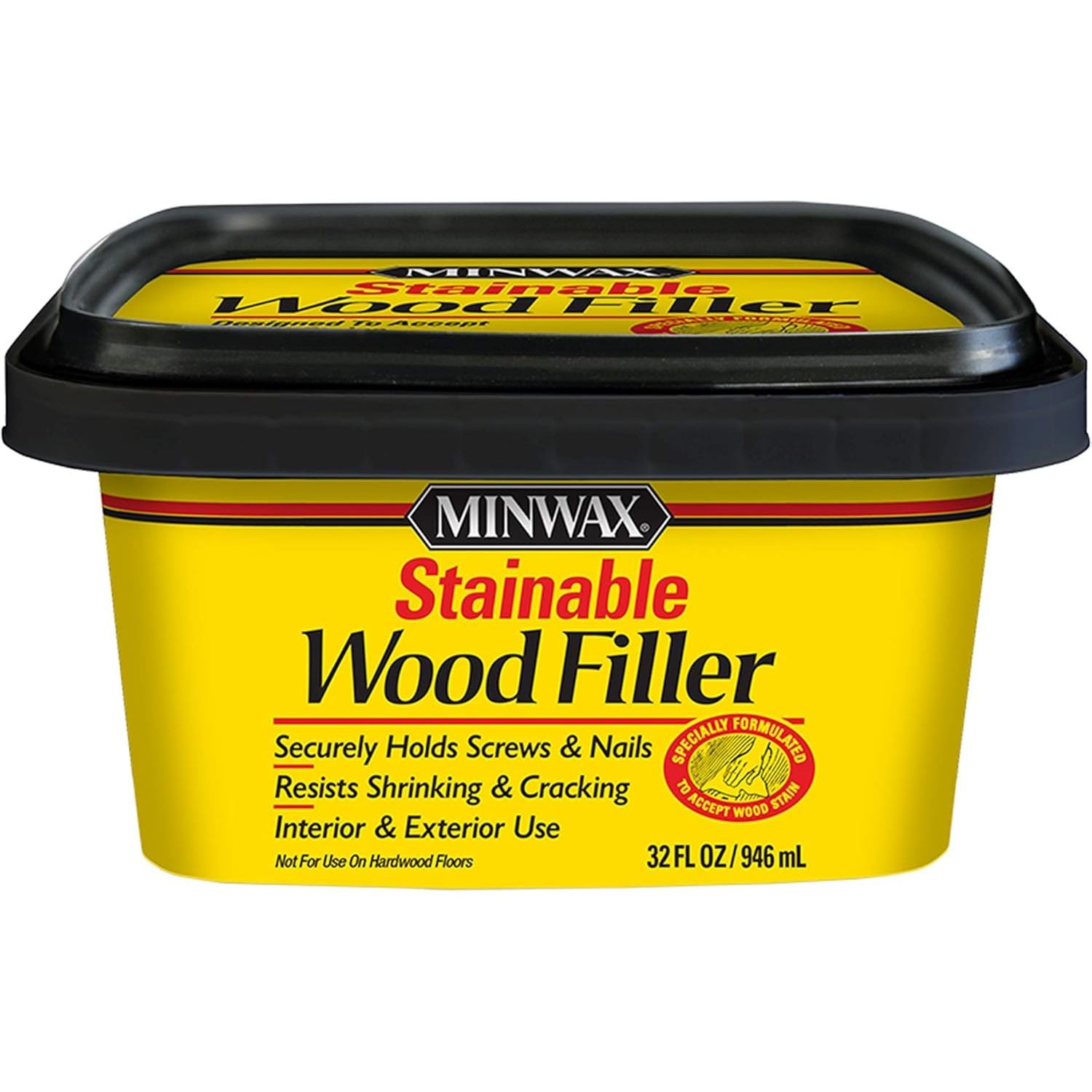 - STAINABLE WOOD FILLER – Minwax Indoor/Outdoor Wood Filler is a stainable and paintable latex formula specially formulated to accept all Minwax stains, including both oil and water-based wood stains.