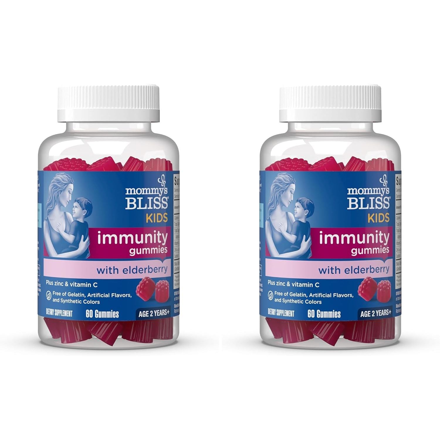- Mommy's Bliss Kids Elderberry Gummies, Supports Immunity with Black Elderberry, Zinc & Vitamin C, Gluten Free & Vegan, Age 2 Years+ (60 Count)