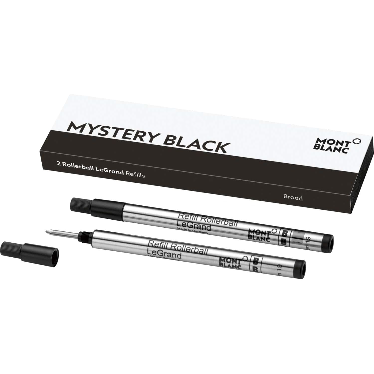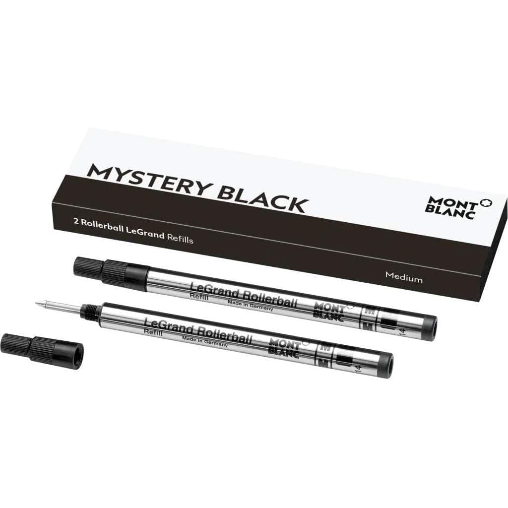 - Items delivered: 2 x Rollerball LeGrand Refills M in Mystery Black by Montblanc / Pen refills come in an elegant gift box that mirrors the ink color