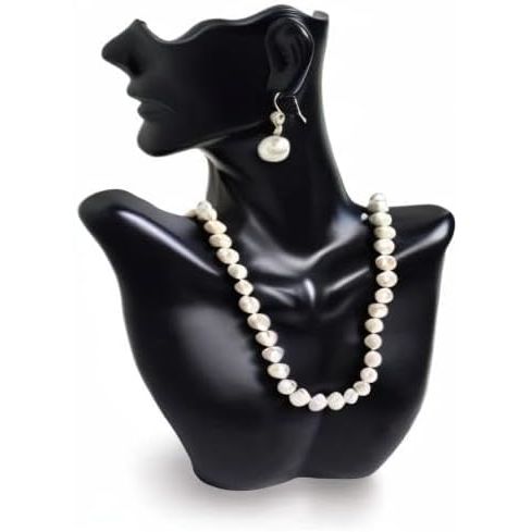 • BLACK MANNEQUIN JEWELRY STAND - It's perfect for displaying a 12"L to 20"L necklace; the hook on the back adjusts the chain.