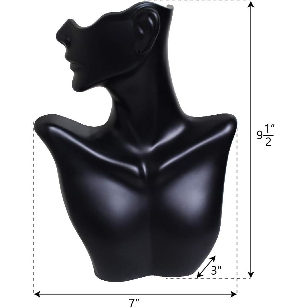 MOOCA Tabletop Small Necklace & Earring Jewelry Displays, Earring Display Stands, Necklace Stand, Mannequin Jewelry Bust, 7 W x 3 D x 9 1/2 H in, Black