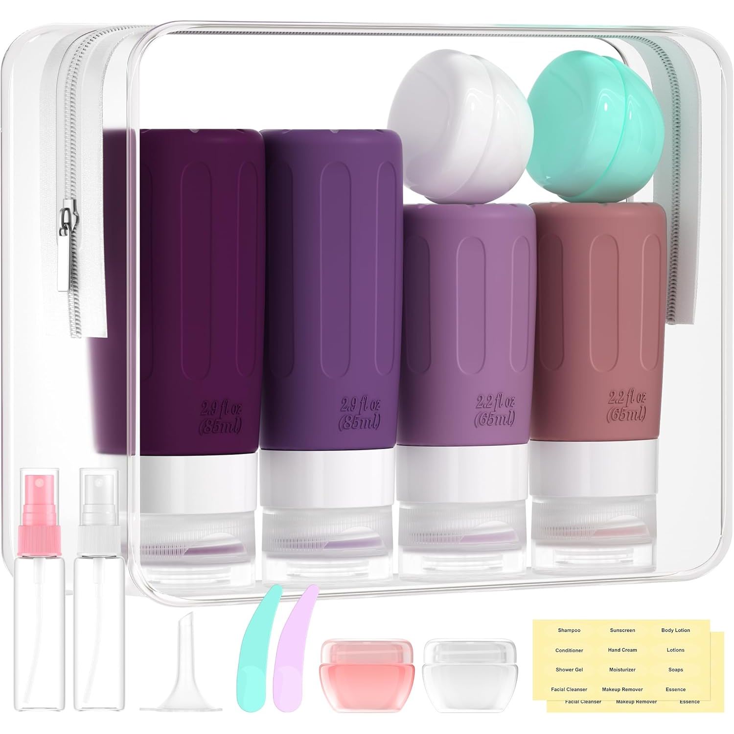 - Morfone 16 Pack Travel Bottles Set for Toiletries, TSA Approved Travel Containers Leak Proof Silicone Squeezable Travel Accessories 2oz 3oz for Shampoo Conditioner Lotion Body Wash (BPA Free)