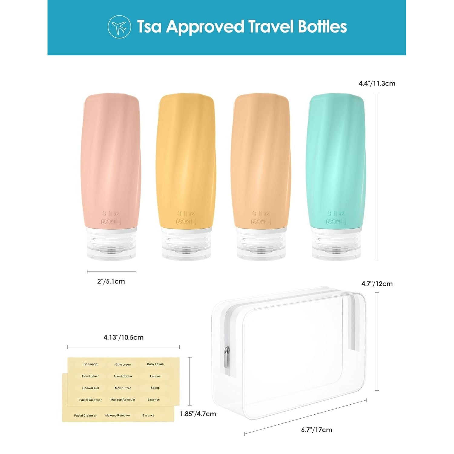 - Morfone Travel Bottles for Toiletries, 3oz TSA Approved Travel Size Containers Leak Proof Squeezable Travel Accessories Refillable for Shampoo Conditioner Lotion Liquids(4Pack)