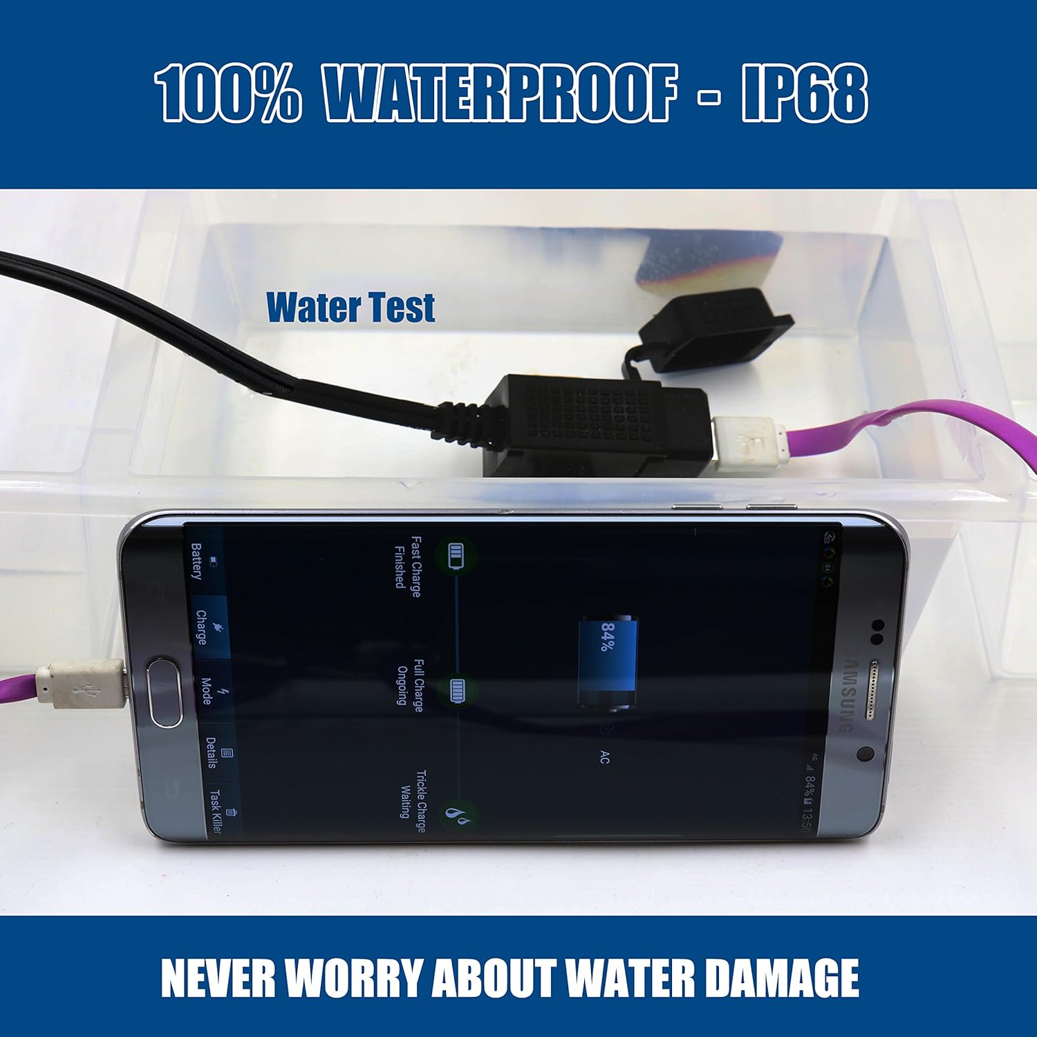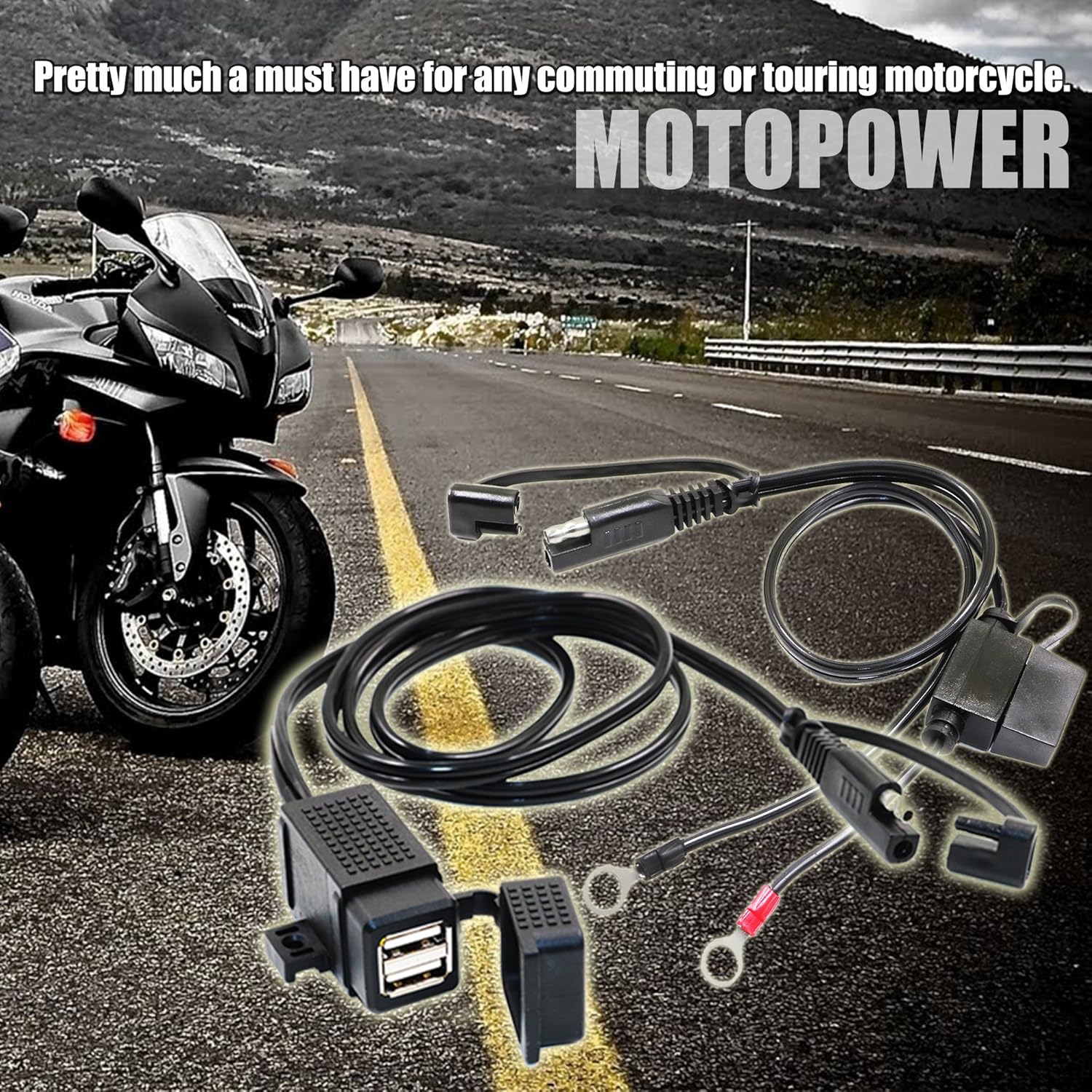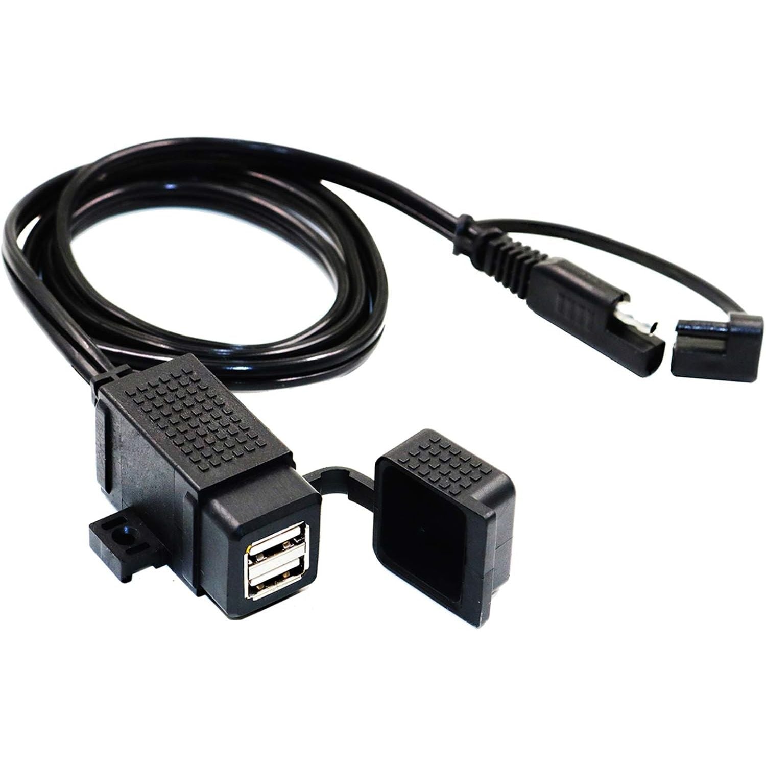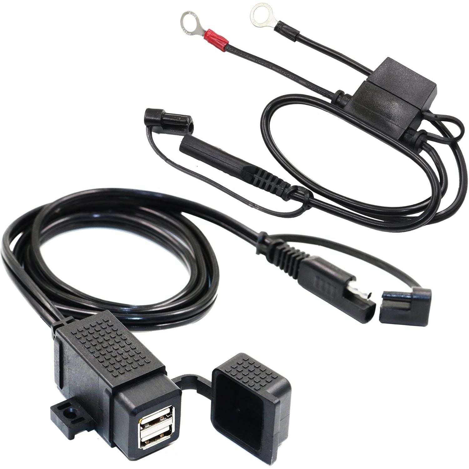 - MOTOPOWER MP0609EA 3.1Amp Waterproof Motorcycle Dual USB Kit SAE to USB Adapter Cable with SAE Ring Terminal Cable Harness