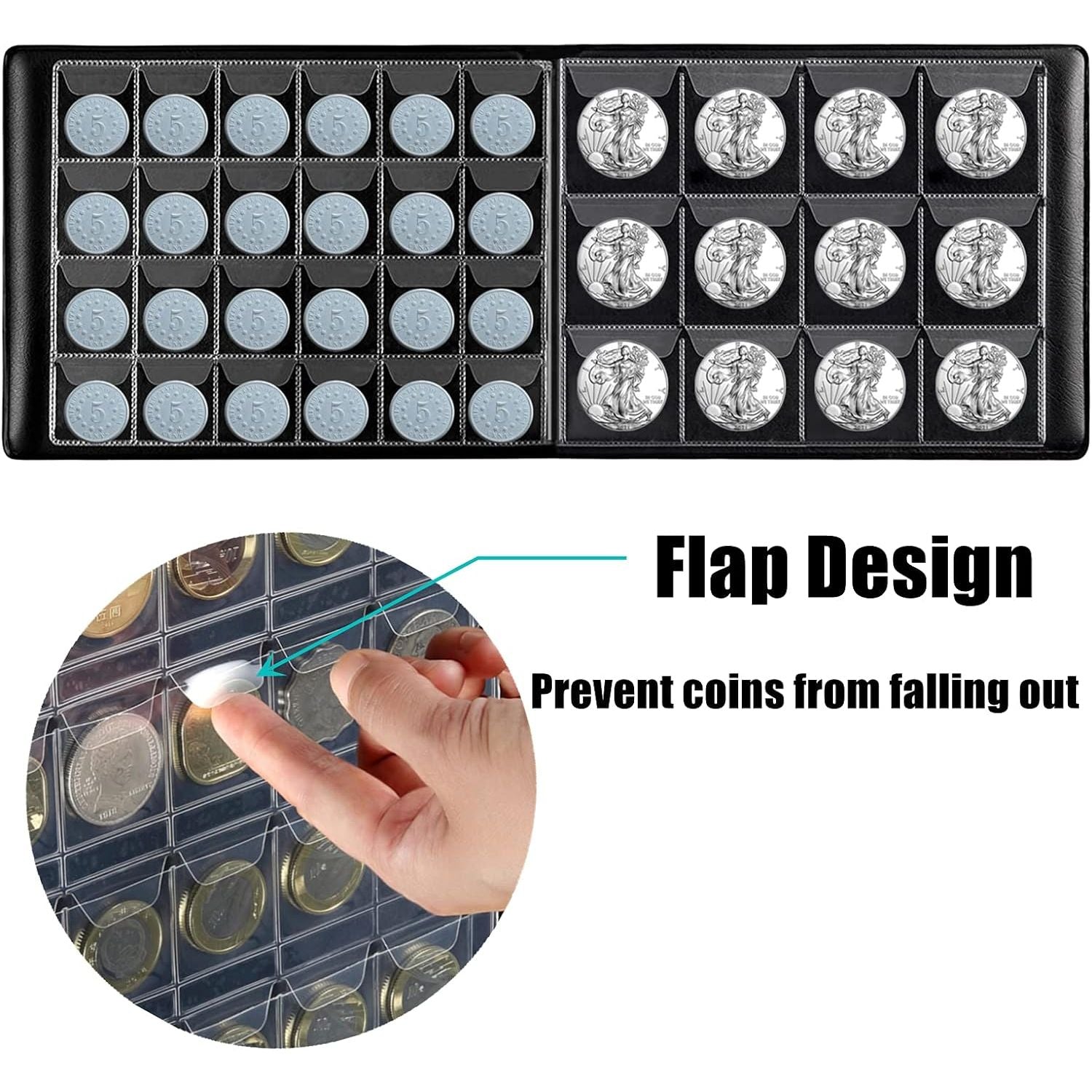 - The coin collection supplies has flaps to prevent coins from falling out.