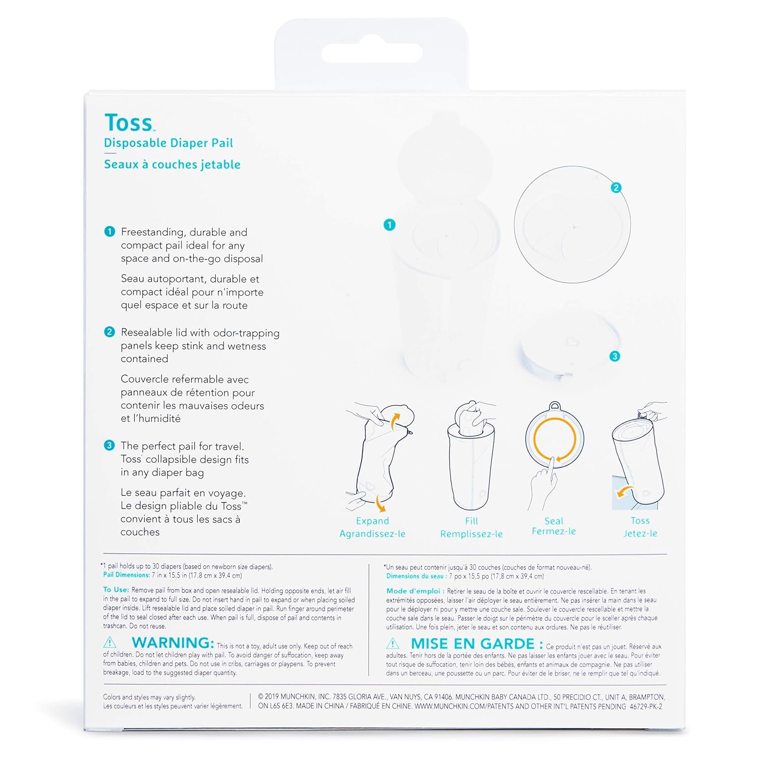 - Munchkin® Toss™ Portable Disposable Diaper Pail, Holds up to 30 Newborn Diapers, 1 Pack, White