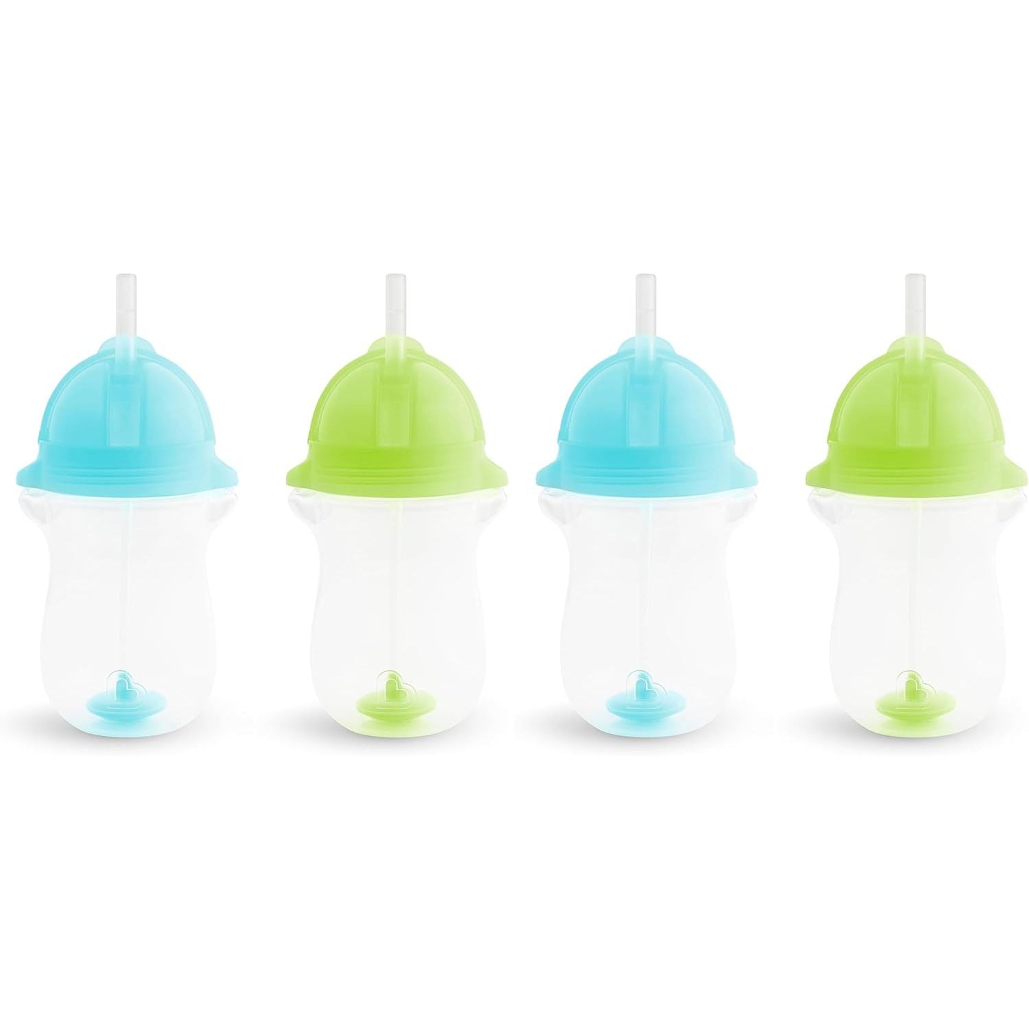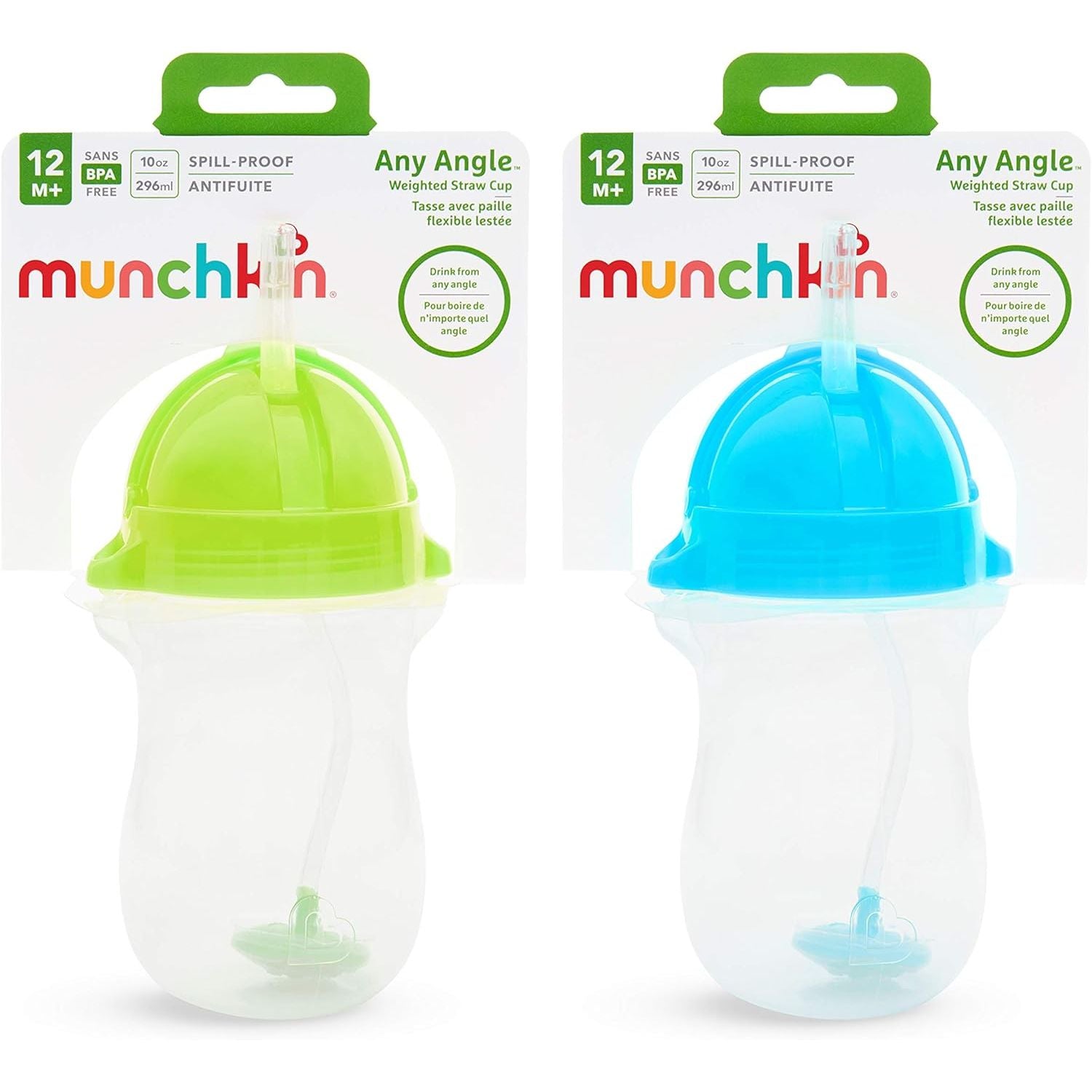 Munchkin Any Angle Weighted Toddler Straw Cups with Click Lock Lid, 10 Ounce, 2 Pack, Blue/Green