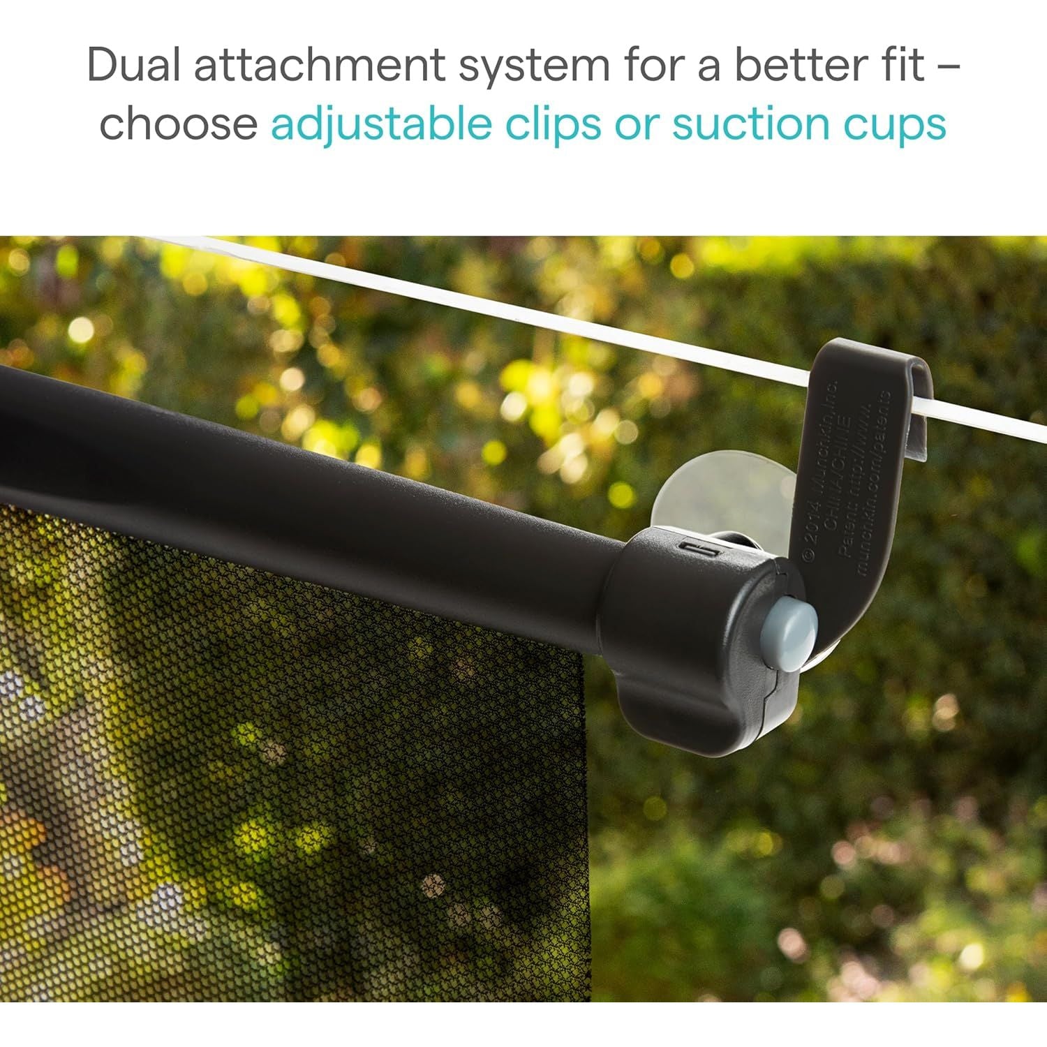 - Munchkin Brica Sun Safety Car Window Shade with Heat Alert, Helps Block UVA/UVB Rays, 2 Pack, Black