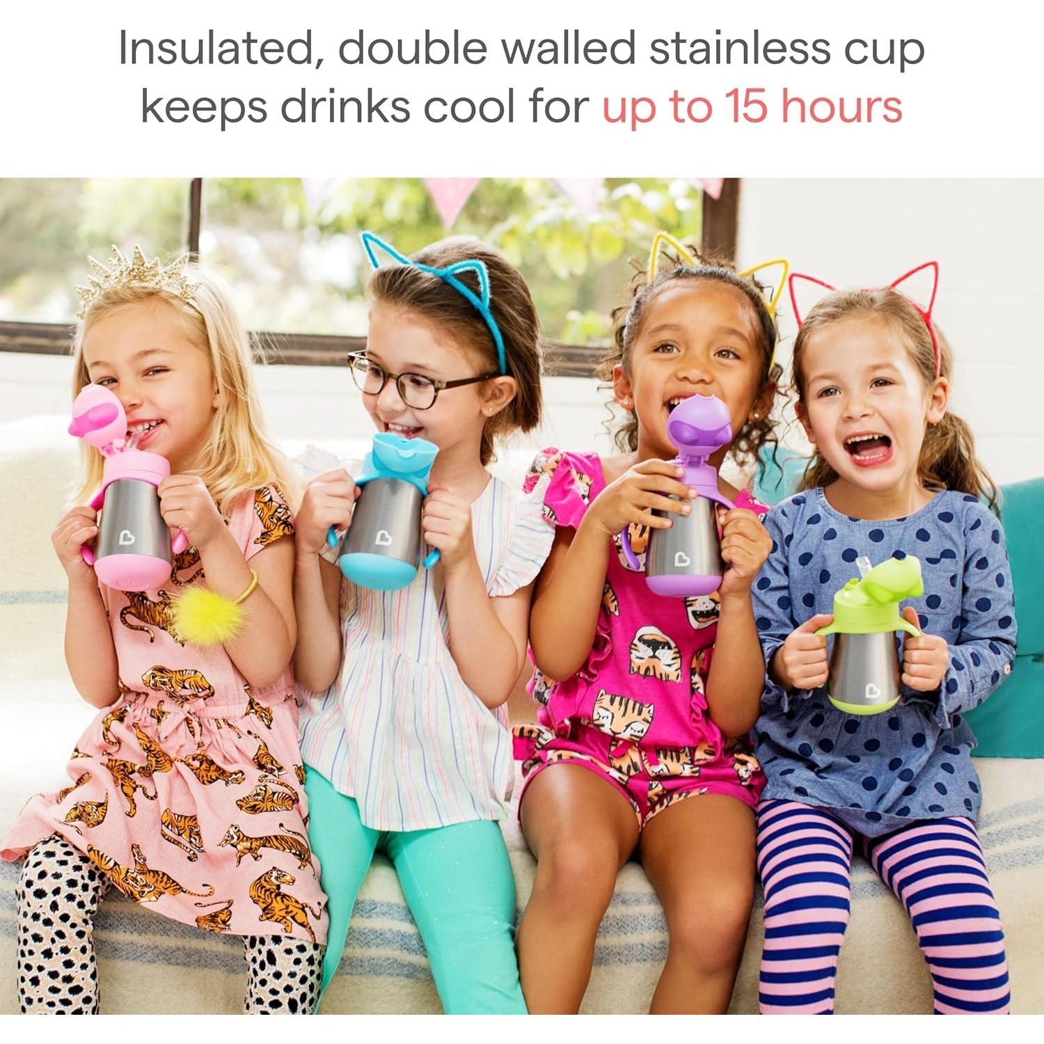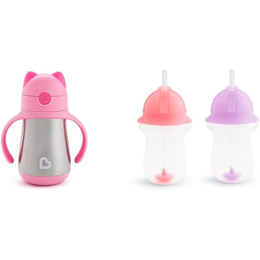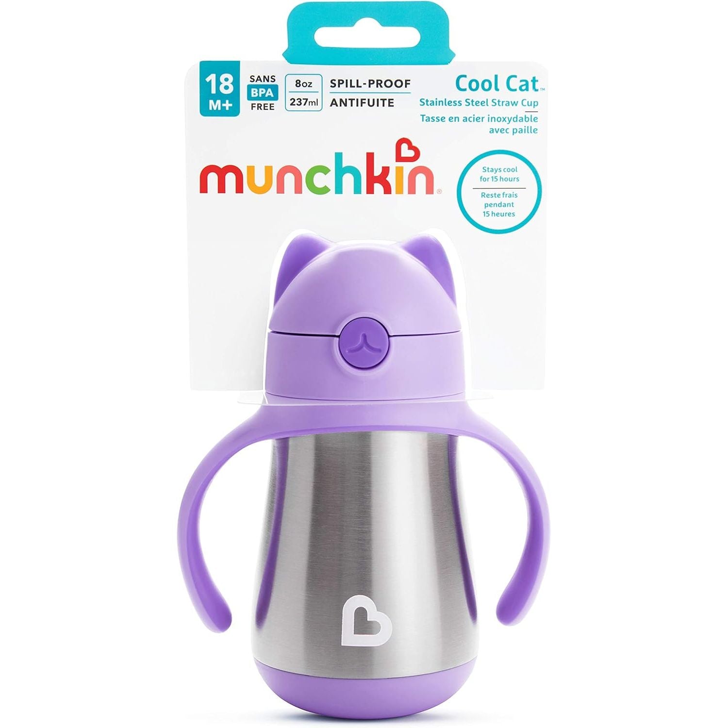 - Munchkin Cool Cat Sippy Cup for Toddlers, Stainless Steel Straw Cup, 8 Ounce, Purple