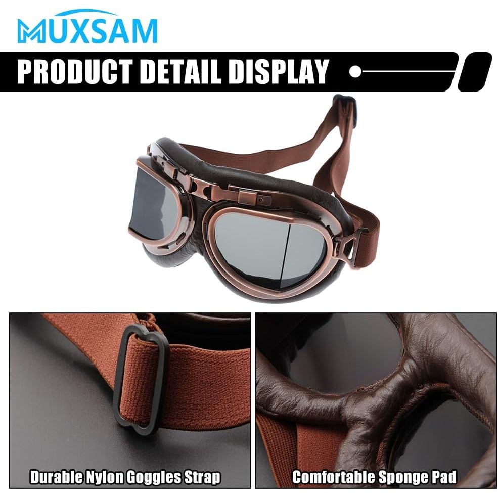 - MUXSAM Vintage Motorcycle Goggles, ATV Motocross Goggles, Dirt Bike Racing Riding Off Road Scooter Glasses, Windproof Dustproof Eyewear for Adults Men Women, Copper Frame Smoke Lens