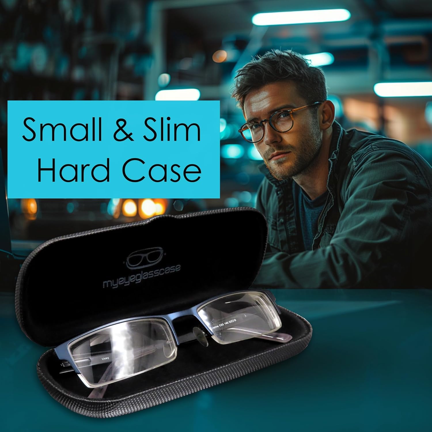 - MyEyeglassCase Men Small Glasses case - Eyeglasses Hard Shell Holder Pouch & Cloth-Reading Slim & Narrow Case Heavy Duty