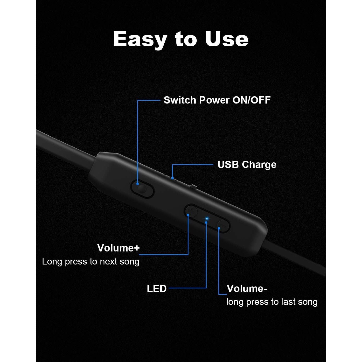 - √ Born for Sports - Ergonomic neck design allows the weight of the headset to be evenly distributed around the neck. Three pairs of different size earplugs are available for different ear shapes. And 27.5° oblique in-ear design prevent headphones from falling off. Offer no-hassle 1-Year warranty and friendly 24-hour customer service.