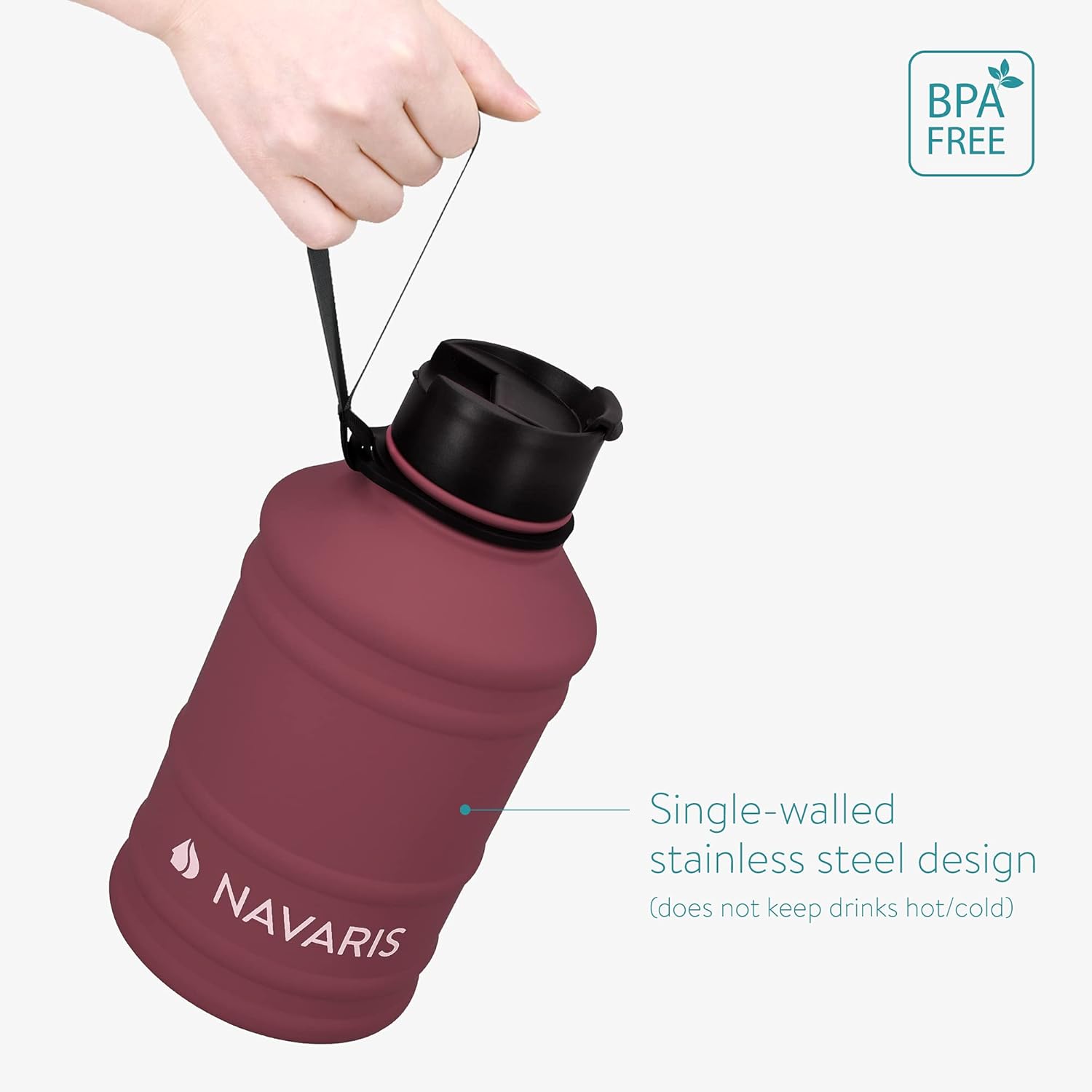 - Navaris Stainless Steel Water Bottle - Single-Walled 75oz (2.2L) Big Metal Drinking Bottle for Sports, Camping, Gym - More Than Half Gallon Capacity