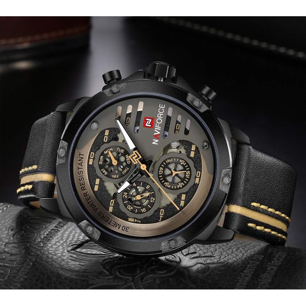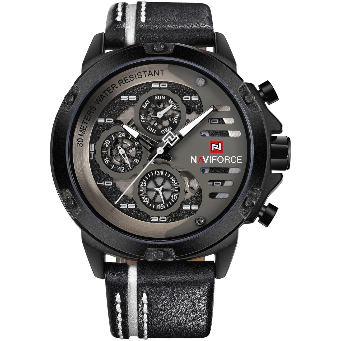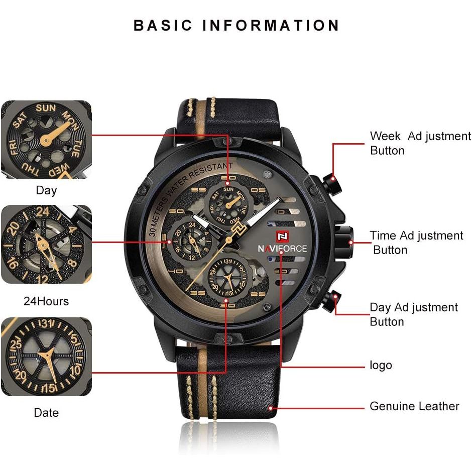NAVIFORCE Sport Military Watches for Men Waterproof Watch Analog Quartz Leather Band Date Calendar Clock Wristwatch