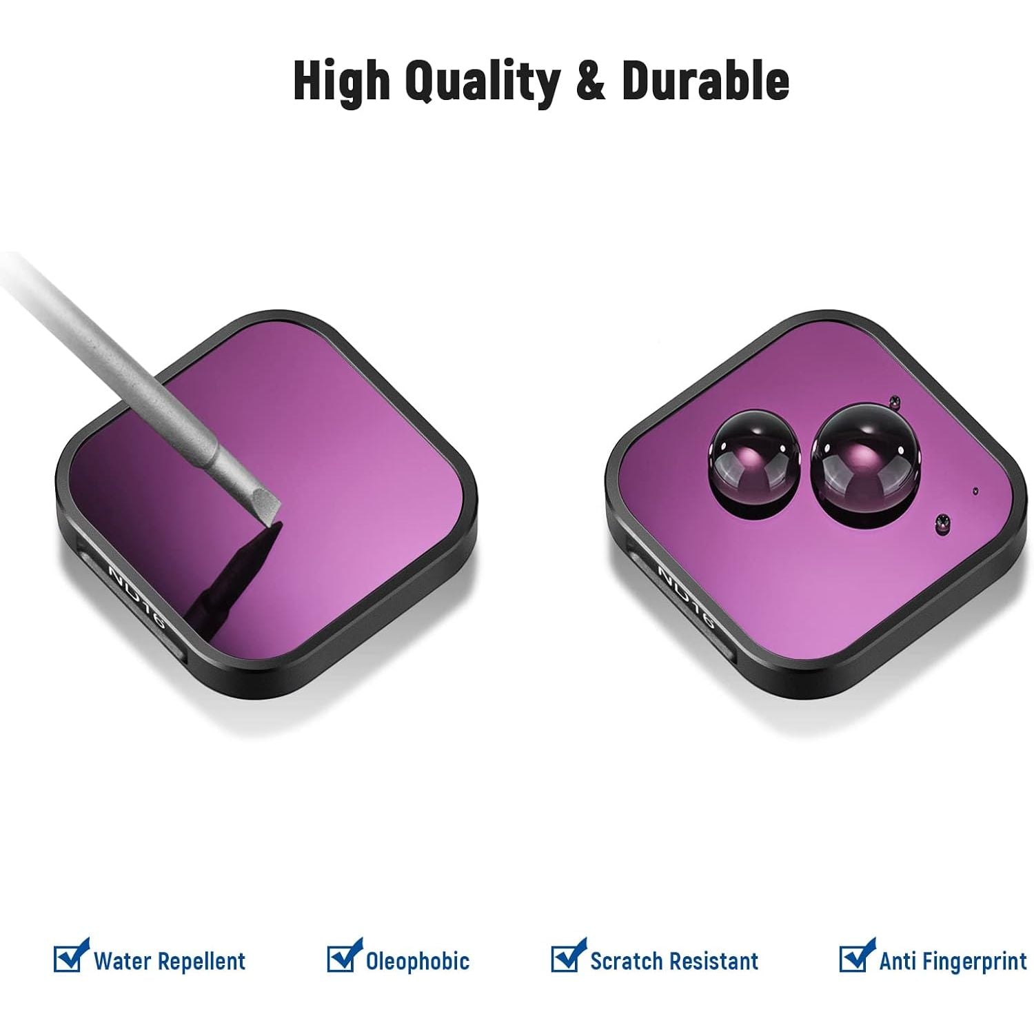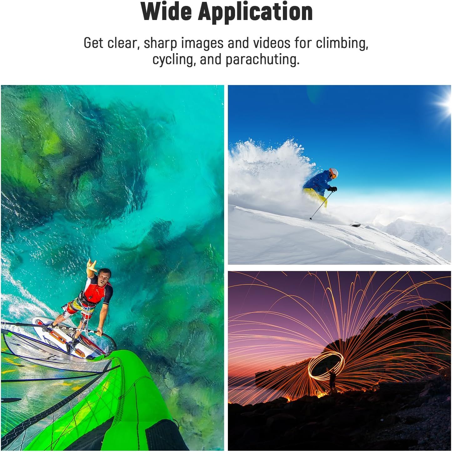 - 【Easy to Use】Unscrew the original filters counterclockwise, then turn the filter clockwise to allow a quick swap to another filter. This filter kit helps to get crystal clear pictures and videos efficiently during climbing, cycling, skydiving, etc.