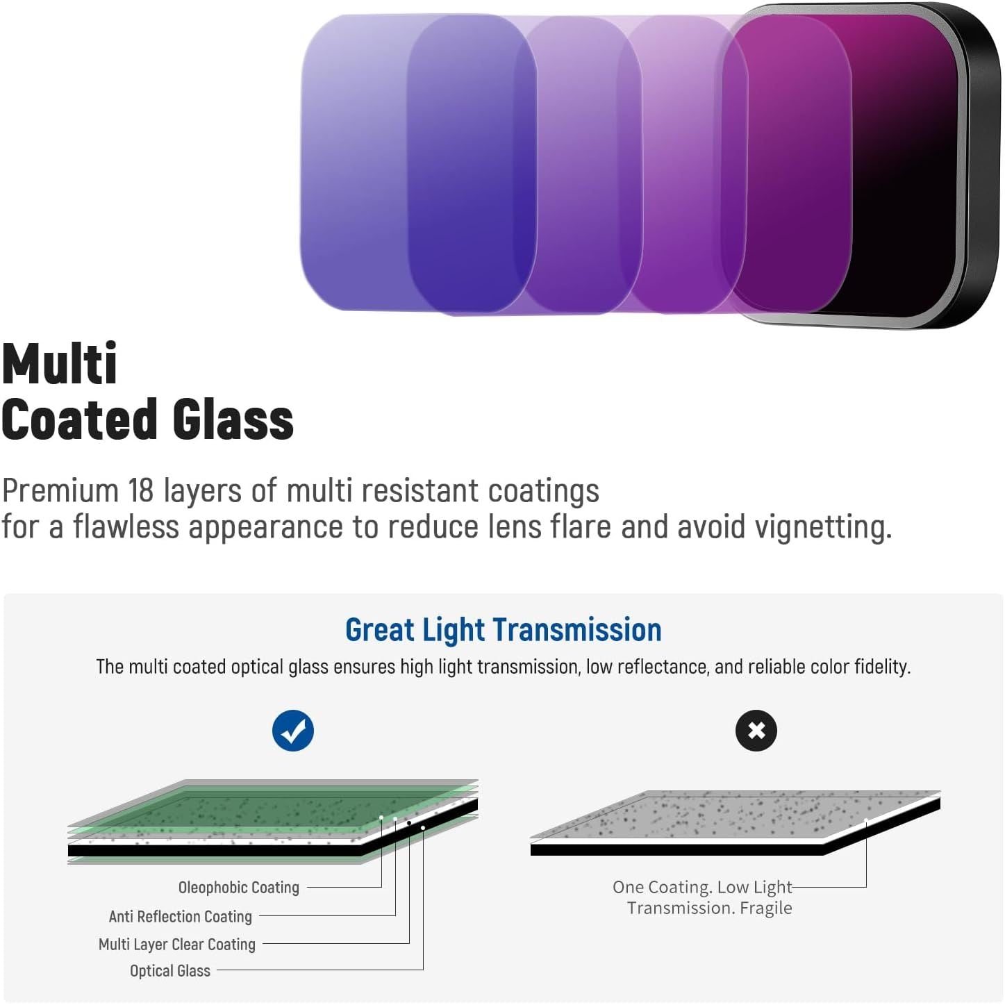 - 【Multi Coated Glass】Premium 18 layers of multi resistant coatings for a flawless appearance to reduce lens flare and avoid vignetting.