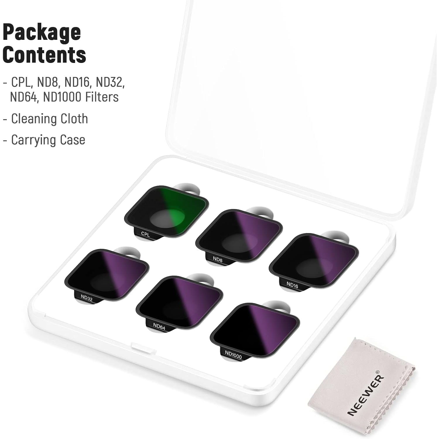 - NEEWER ND Filter Set Compatible with GoPro Hero 12 11 10 9 Black, 6 Pack (CPL/ND8/ND16/ND32/ND64/ND1000) Action Camera Accessory Neutral Density Polarizer Lens Filter Kit