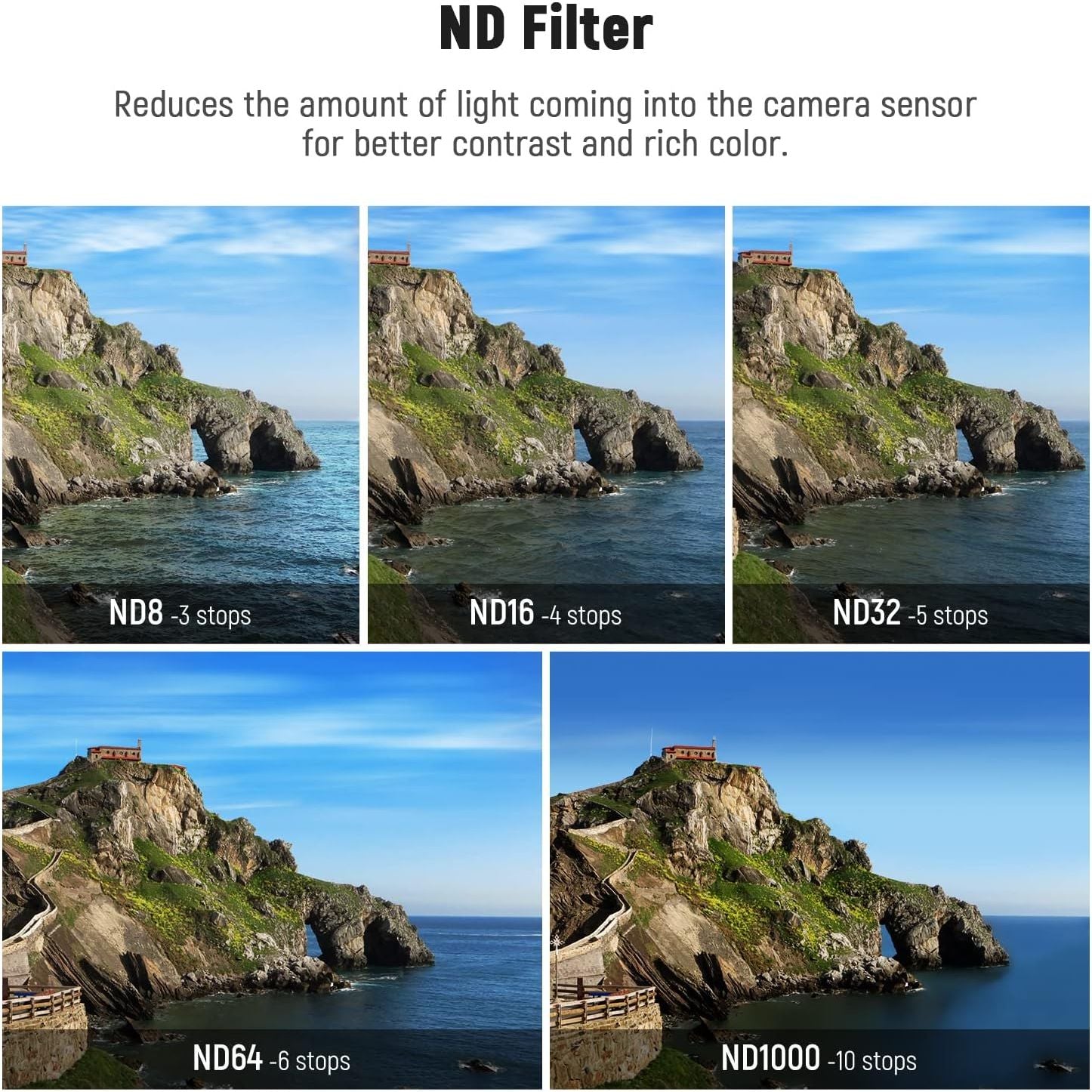 - 【What You Get】Package includes CPL, ND8, ND16, ND32, ND64, ND1000 filters in a small protective hard plastic case. Note: Only the glass surface is water resistant; The filter cannot be used in water