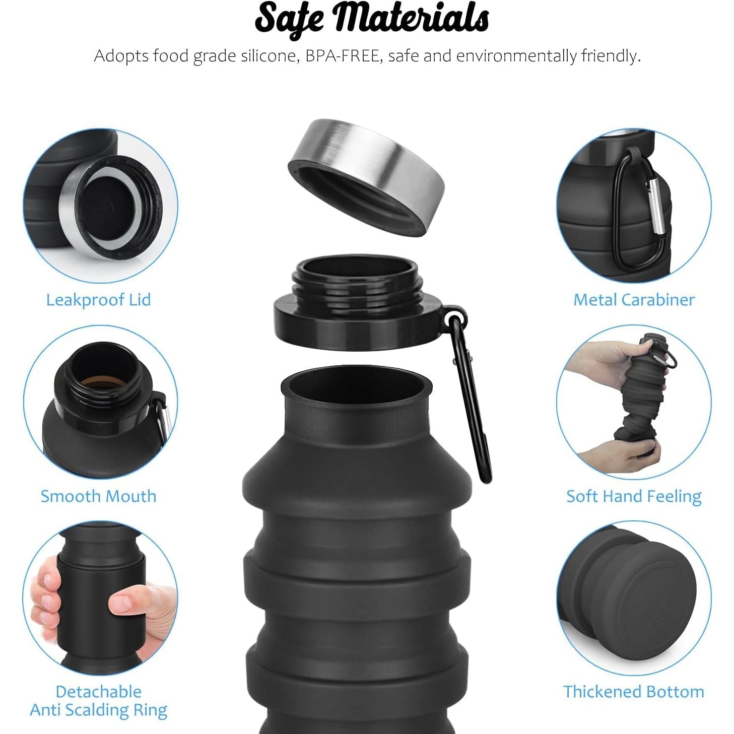 - Nefeeko Collapsible Water Bottle, Reuseable BPA Free Silicone Foldable Water Bottles for Travel Gym Camping Hiking, Portable Leak Proof Sports Water Bottle with Carabiner