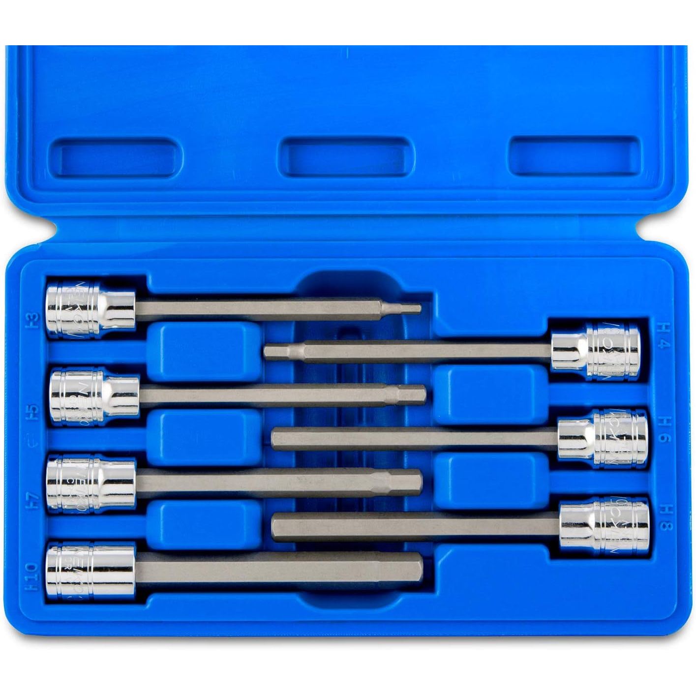 - EXTRA LONG SET: Includes extra-long set (110mm x 3, 4, 5, 6, 7, 8, and 10mm) of hex bit sockets to access tight spaces such as European car suspensions