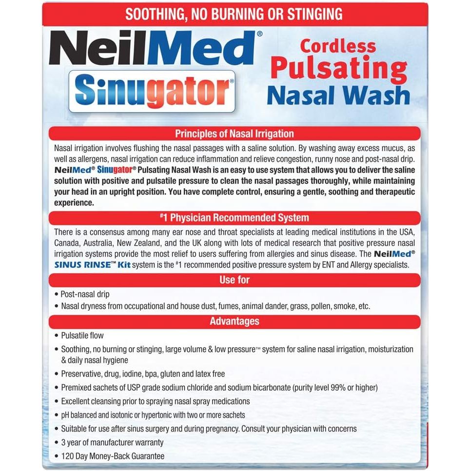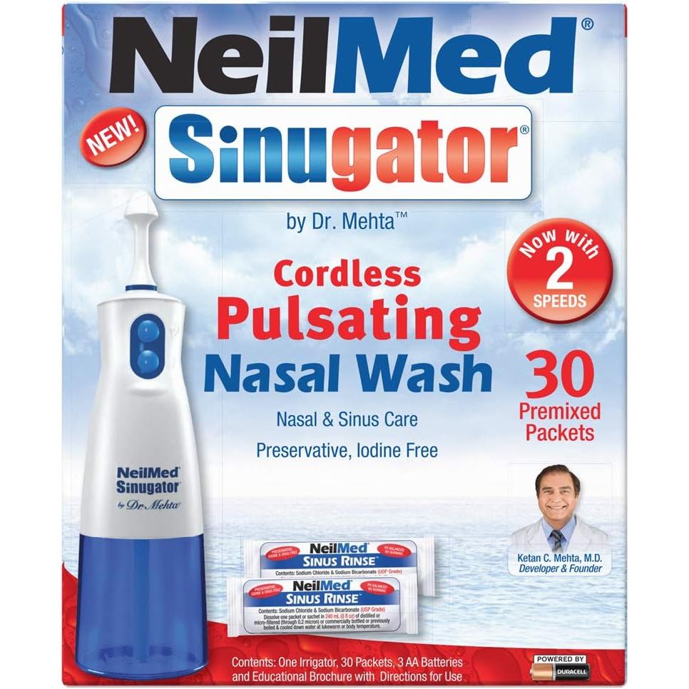 - NeilMed Sinugator Cordless Pulsating Nasal Wash Kit with One Irrigator, 30 Premixed Packets and 3 AA Batteries(Pack of 1)