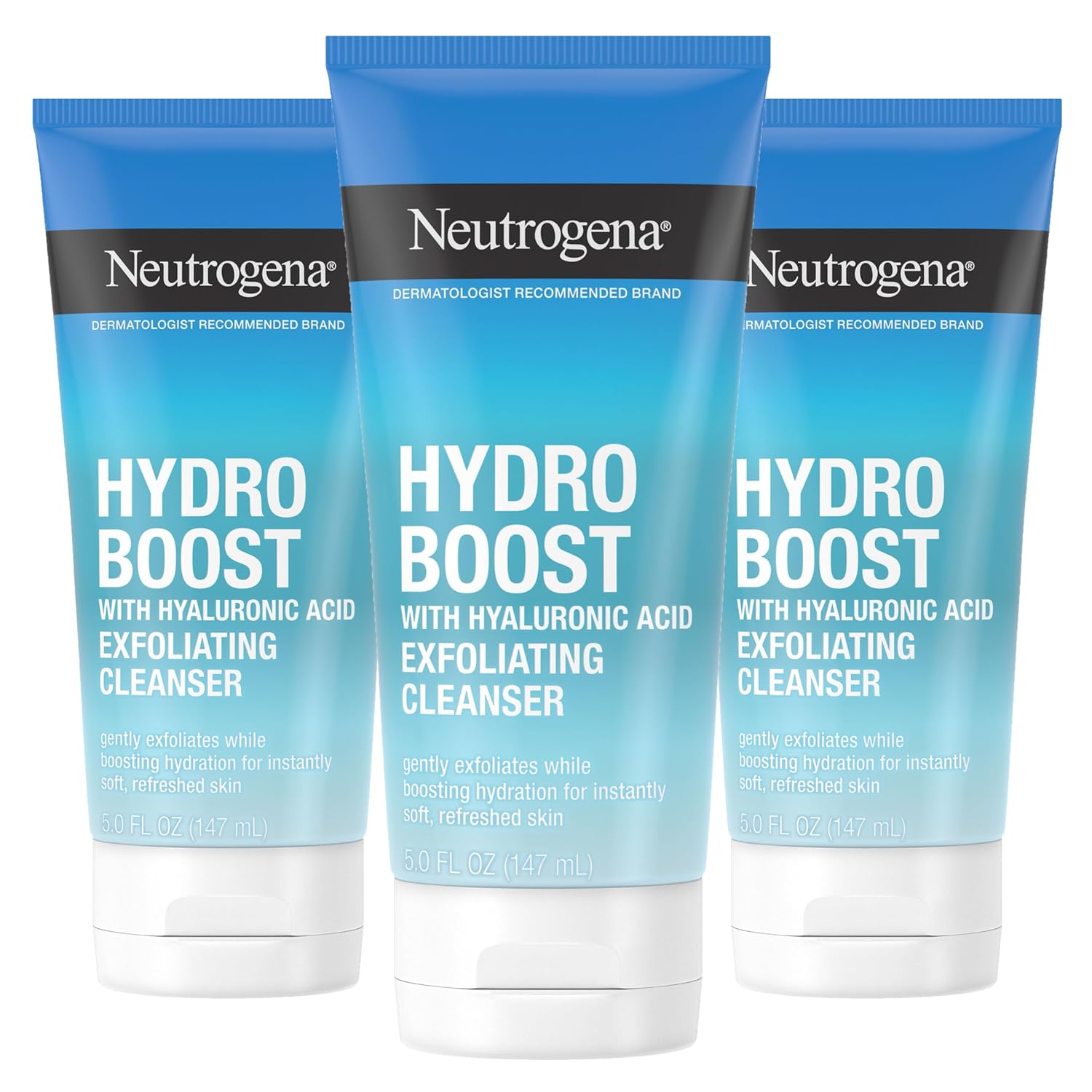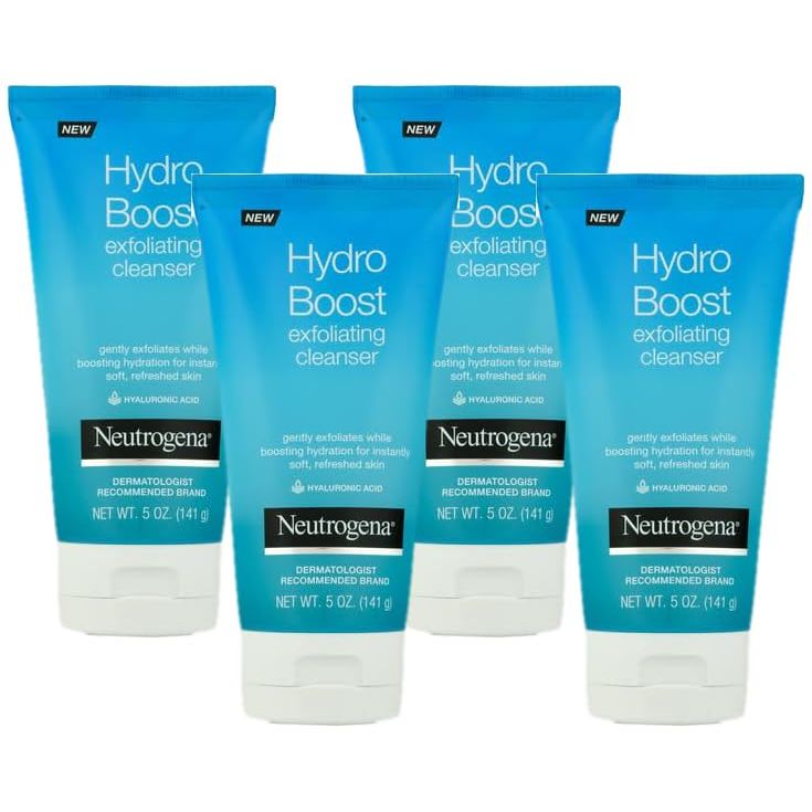 - Neutrogena Hydro Boost Gentle Exfoliating Daily Facial Cleanser with Hyaluronic Acid, Face Wash Clinically Proven to Increase Skin's Hydration Level, Oil-Free & Non-Comedogenic, 5 oz, 3 Pack