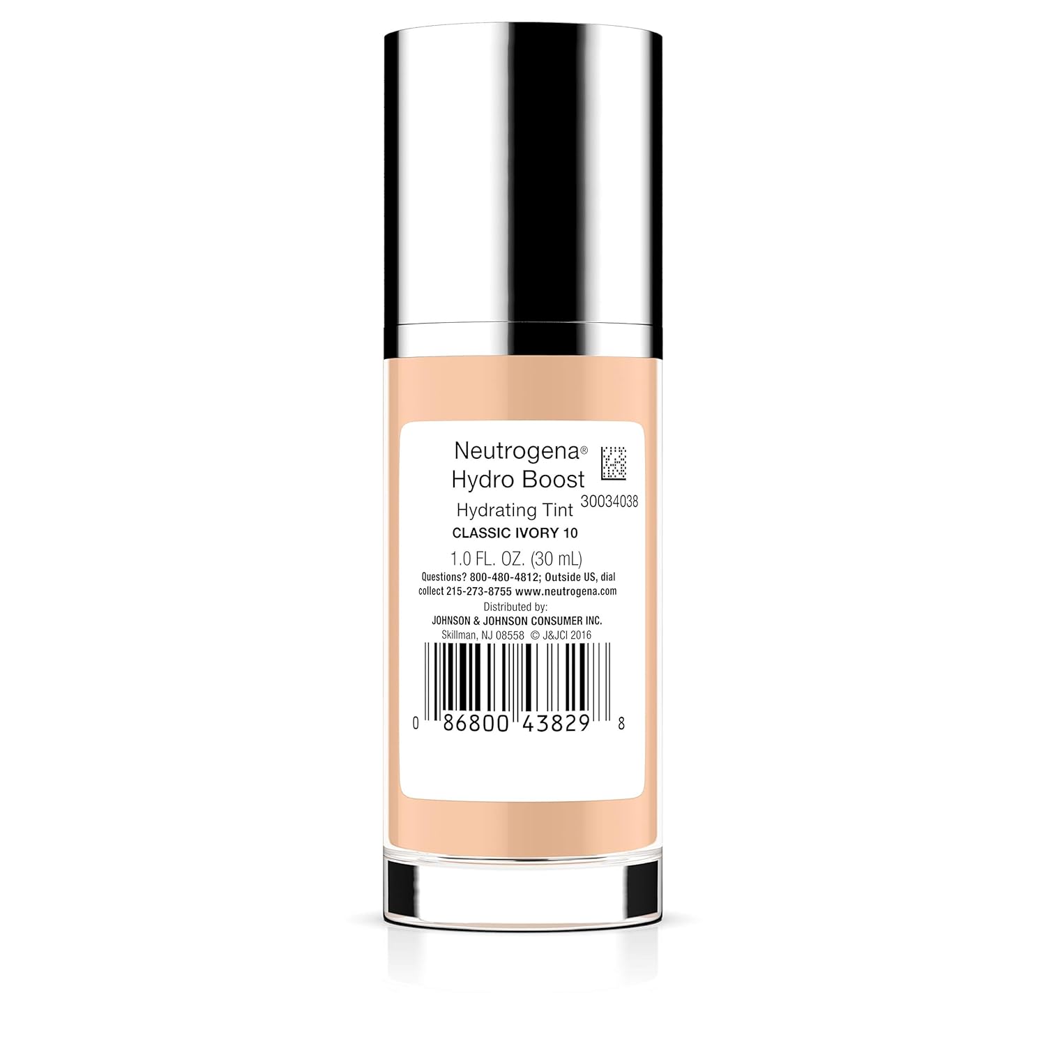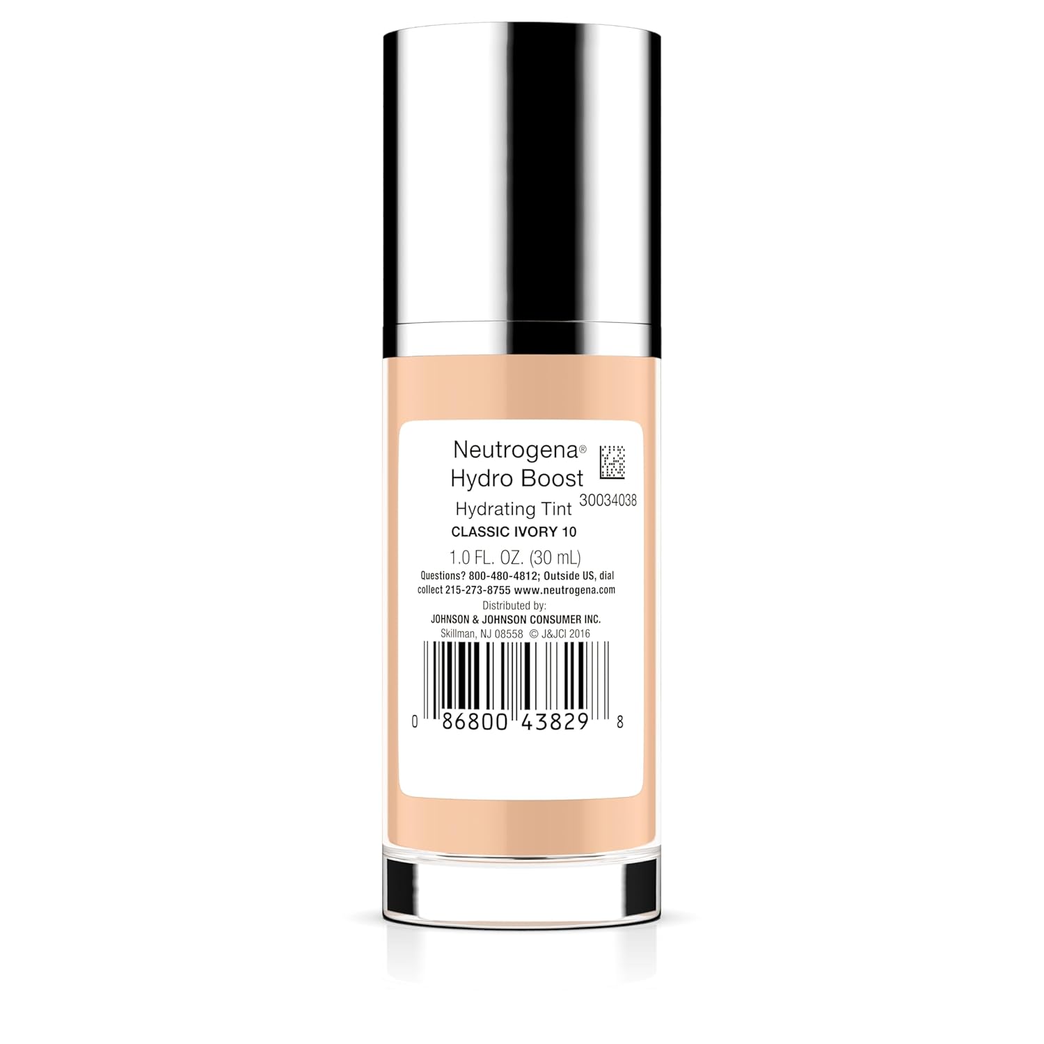 - Neutrogena Hydro Boost Hydrating Tint Foundation Makeup for Dry Skin, with Hyaluronic Acid, Lightweight Oil-Free Water Gel, Non-Comedogenic 10 Classic Ivory, 1.0 fl. oz