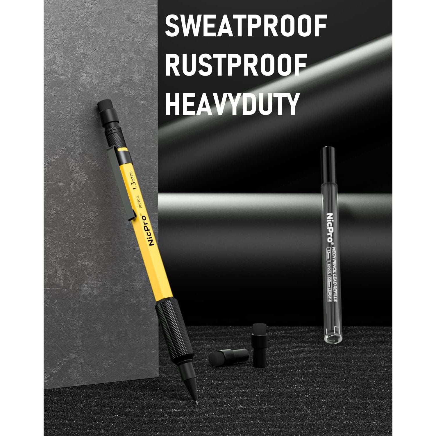 - Nicpro 1.3 mm Mechanical Pencil Set with 12 Lead Refill, Eraser - Weatherproof Metal MP2000 Heavy Duty Carpenter Pencil for Outdoor Marking Drafting Drawing Sketching Woodworking - with Case