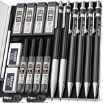 - Come with 6 PCS drafting pencils and 8 tubes of lead refill in 0.3mm 0.5 mm & 0.7mm & 0.9mm (HB) + 2.0 mm(4B, 2B, HB, 2H) carbon based , 2 pcs erasers, 9 pcs cap eraser refill, 2 lead sharpener, updated storage case packaging