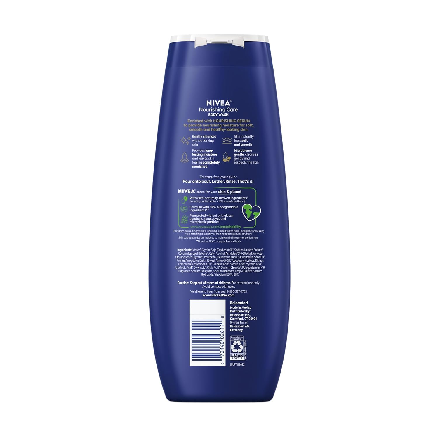 - INCLUDES: One (1) 20 fluid ounce bottle of NIVEA Nourishing Care Body Wash with Nourishing Serum