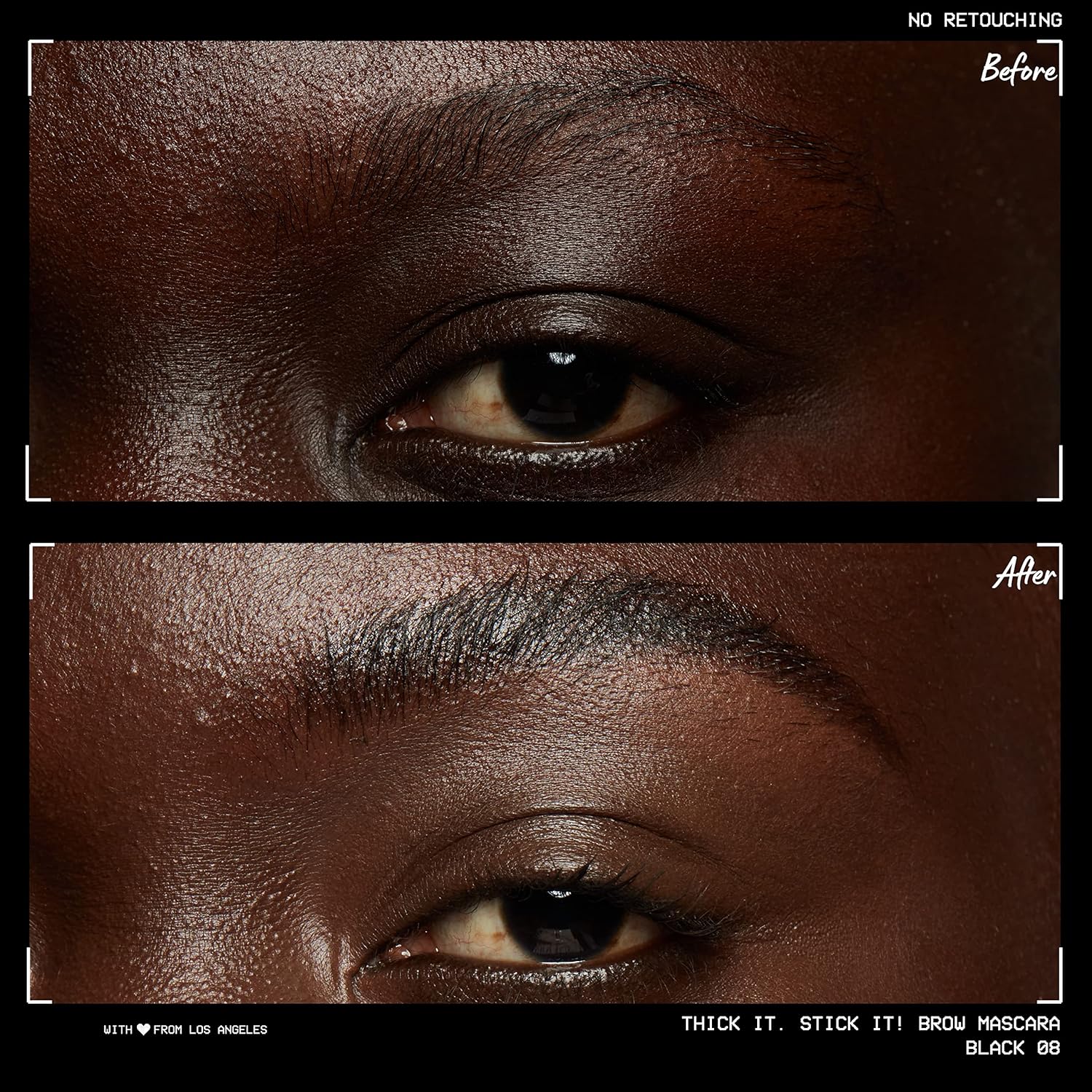 - Thickening Eyebrow Gel: Tint, tame, and thicken all types of eyebrows with a natural finish that lasts up to 16 hours with this ultra-buildable, vegan tinted brow mascara in 8 high-impact inclusive shades