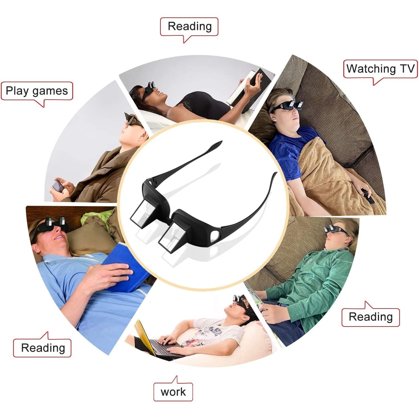 • 【Enjoy Time】Makes it easier for you to watch TV/read books! Buy this funny glasses , wearing it and laying down on sofa or bed watch TV or movie with your family , lover , Kids together! Enjoy you happy relax family time!