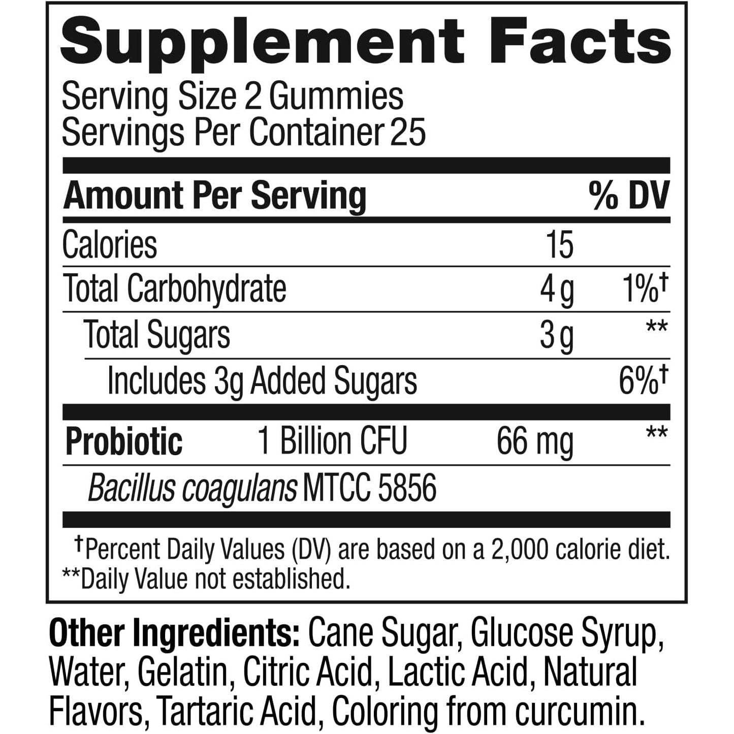 - OLLY PROBIOTIC GUMMY SUPPLEMENT: Go with your gut, and give it a boost with one billion live cultures of bacillus coagulans, probiotics that work with your body’s natural bacteria to help keep your gut flora thriving and your tummy healthy