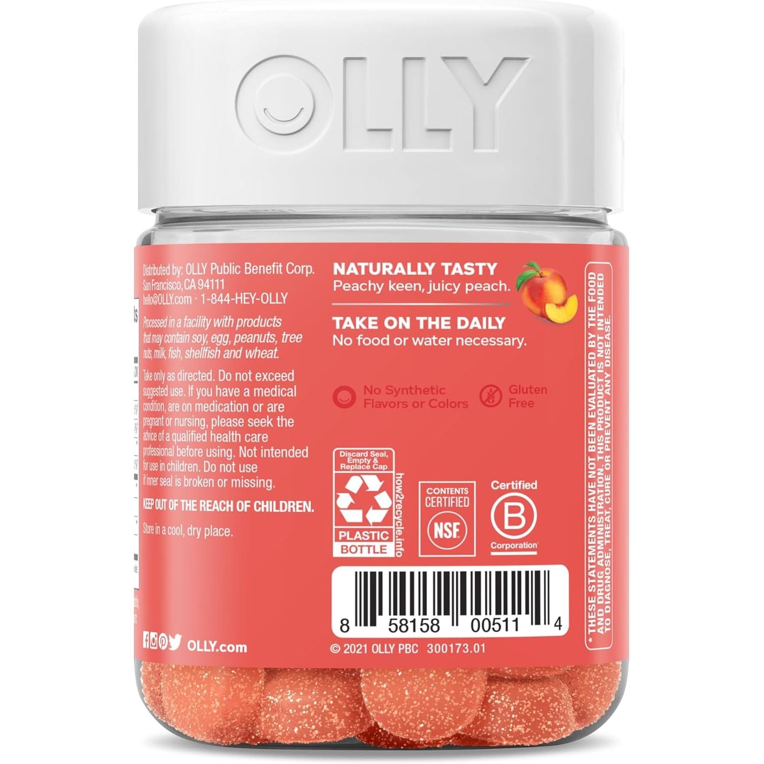 - OLLY Probiotic + Prebiotic Gummy, Digestive Support and Gut Health, 500 Million CFUs, Fiber, Adult Chewable Supplement for Men and Women, Peach, 30 Day Supply - 30 Count