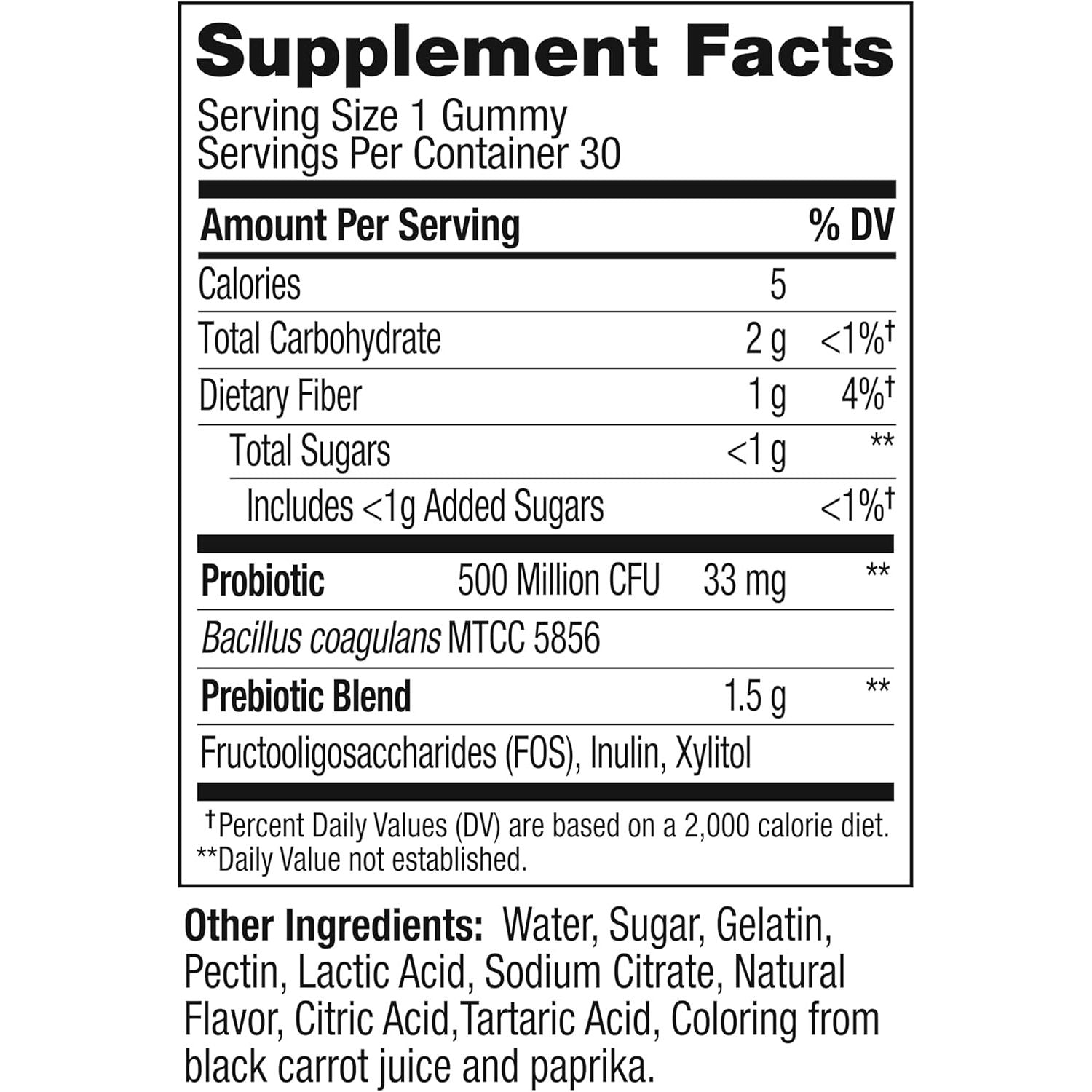 OLLY Probiotic + Prebiotic gummies double down with a boost of the good guy bacteria plus Prebiotic Fiber to help keep things moving in the right direction.* These Probiotic gummies for adults serve up a powerful combination of live Probiotics and Prebiotic Fiber to support natural flora and digestion balance. Probiotics deliver 500 million Bacillus Coagulans, good bugs that work with your body’s natural bacteria to support a healthy digestive tract and immune system, and Prebiotic Fiber nourishes your good bacteria so it can work more efficiently in your body.* Good health is at the center of everything we do. That's why we’ve made it our mission to make nutrition easy to understand. We do it by crafting products that are as effective as they are delicious—because we know when something feels good, you’re more likely to do it.* *These statements have not been evaluated by the Food and Drug Administration. This product is not intended to diagnose, treat, cure or prevent any disease.