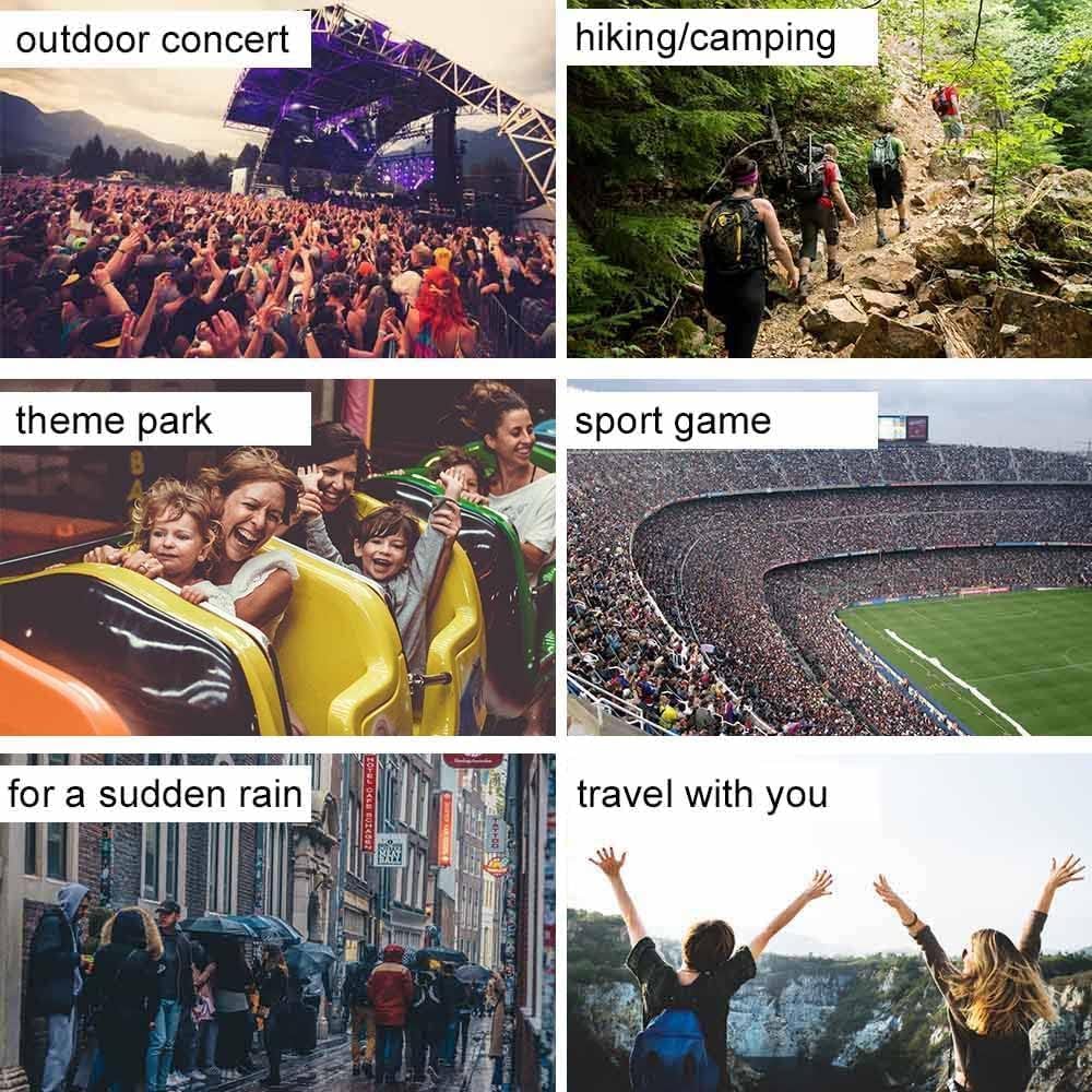• GOOD PROTECTION FROM RAIN – The long sleeves and drawstring hood design keep you arms, head and neck dry in rain. Front snap raincoats make it convenient to take in and off. Perfect for travel, theme park, outdoor concert, hiking, sport game and daily use