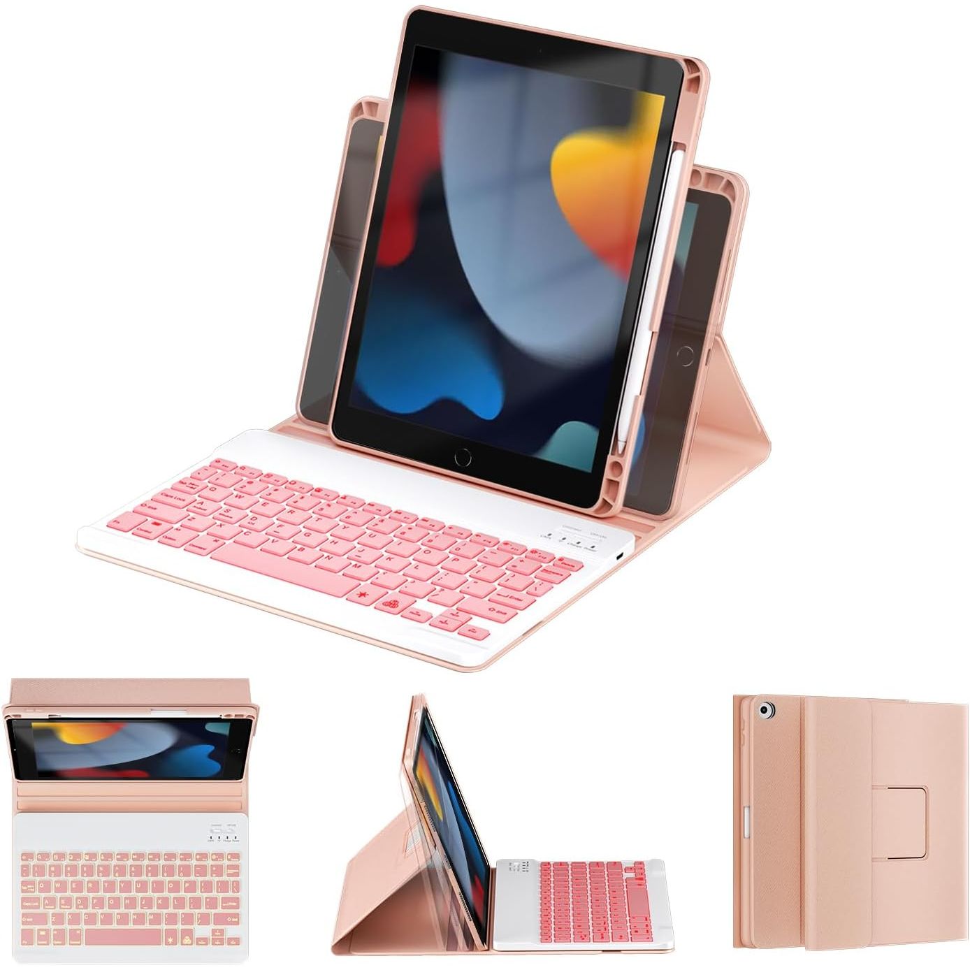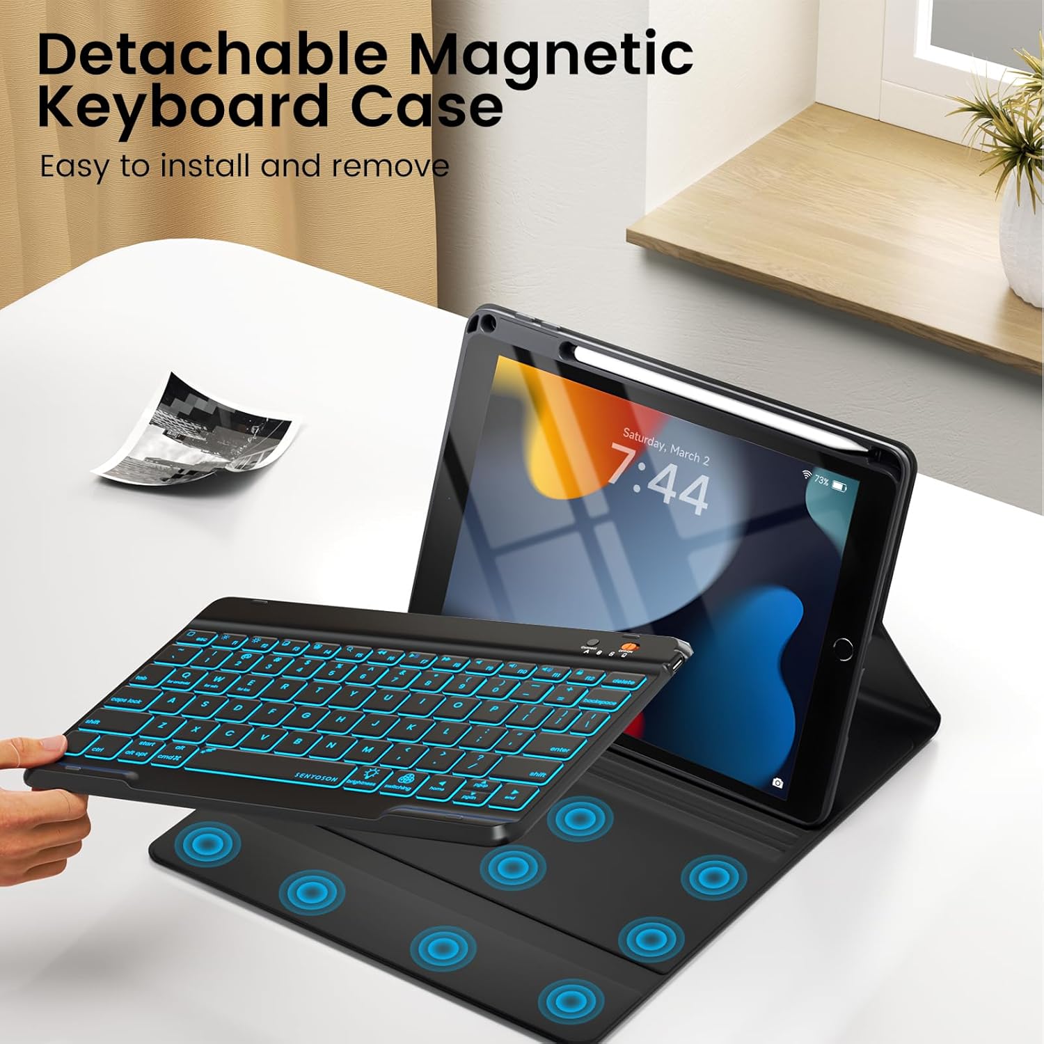 - ⌨️【7 - Color Backlit Bluetooth Keyboard】The keyboard case designed for 10.2 - inch iPad 9th/8th/7th Gen comes with 7 colors and 3 brightness levels for you to choose from, adapting to your lighting conditions and personal style. The backlit typing experience is more enjoyable and effortless